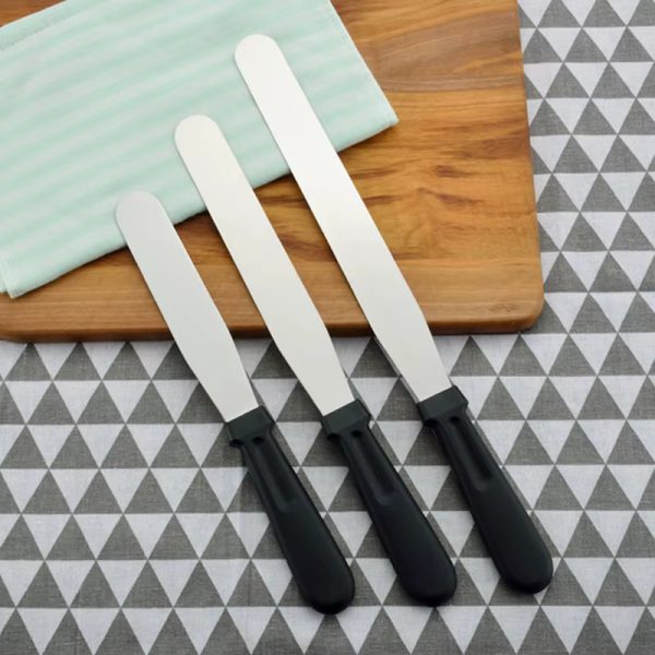 3 معالق بزاوية من الفولاذ المقاوم للصدأ سكين عدل شفرة أوفست ملعقة كريم الصقيع الاحترافية لخبز الكعك والمعجنات