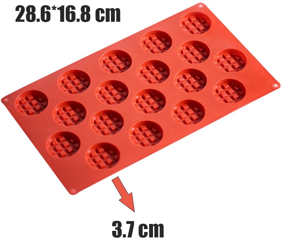 حجم قالب الوافل السيليكوني: تنقسم قوالب الوافل الصغيرة المصنوعة حجم شبكة مستديرة: 3.7 سم.