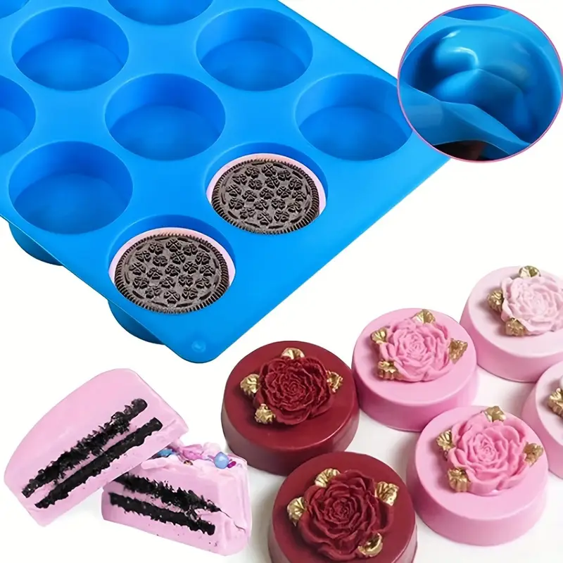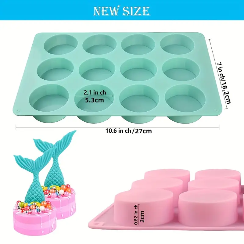 قالب سيليكون من 12 قطعة ، أسطوانة دائرية  الصابون الصغير،