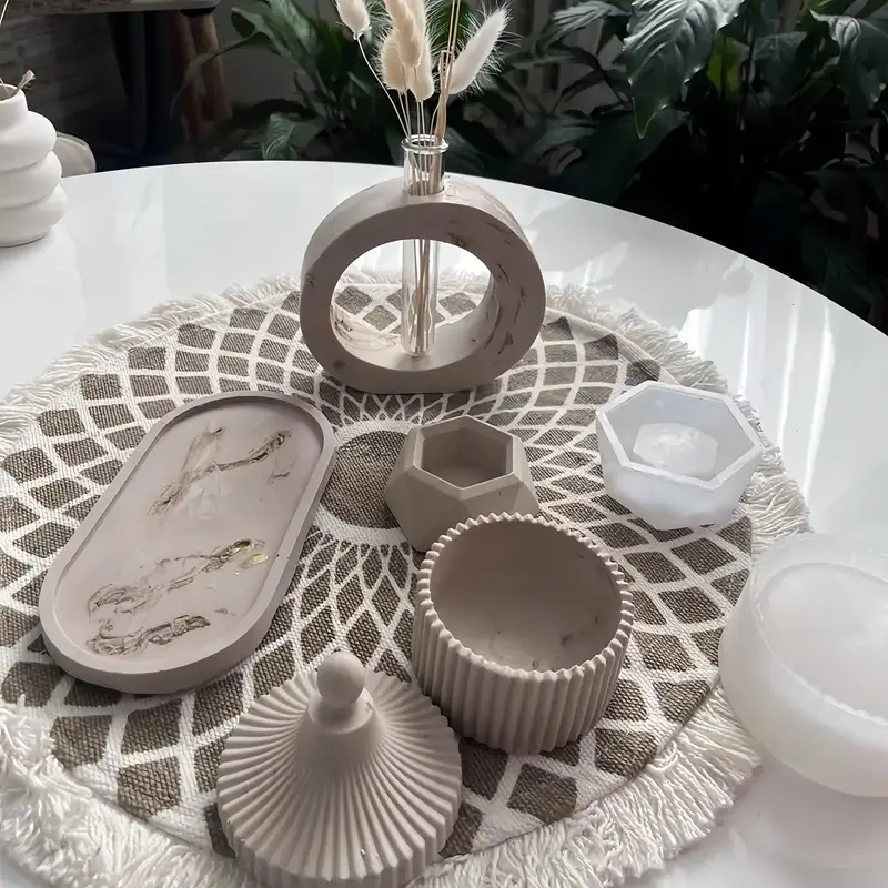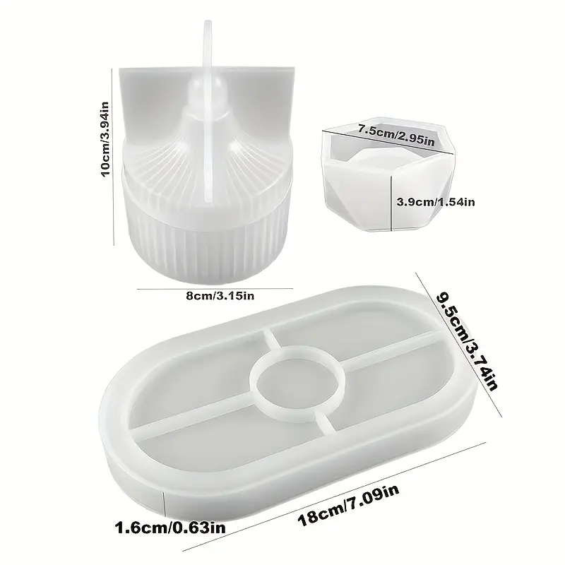 عرض خاص مجموعة قوالب سيليكون كونكريت مكونة من 3 قطع سداسي مع البوبونيرة الترند مع كوستر 18 سم