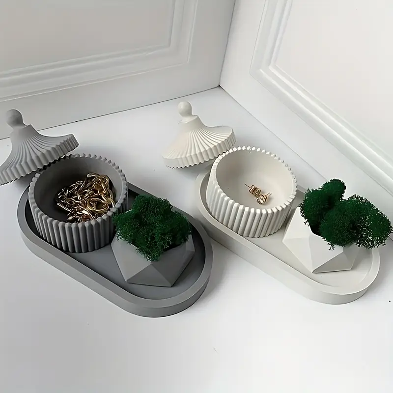 مجموعة قوالب سيليكون مكونة من 4 قطع للديكور المنزلي - ناعمة ومتينة وسهلة التنظيف/الفك، مثالية للخرسانة والجص والحرف اليدوية والهدايا المصنوعة من الراتنج - أشكال مقوسة ودائرية وبيضاوية مع تصميمات لوعاء تخزين مخطط وحامل نباتات