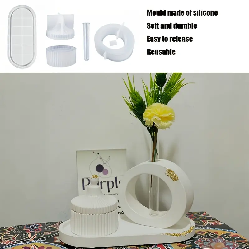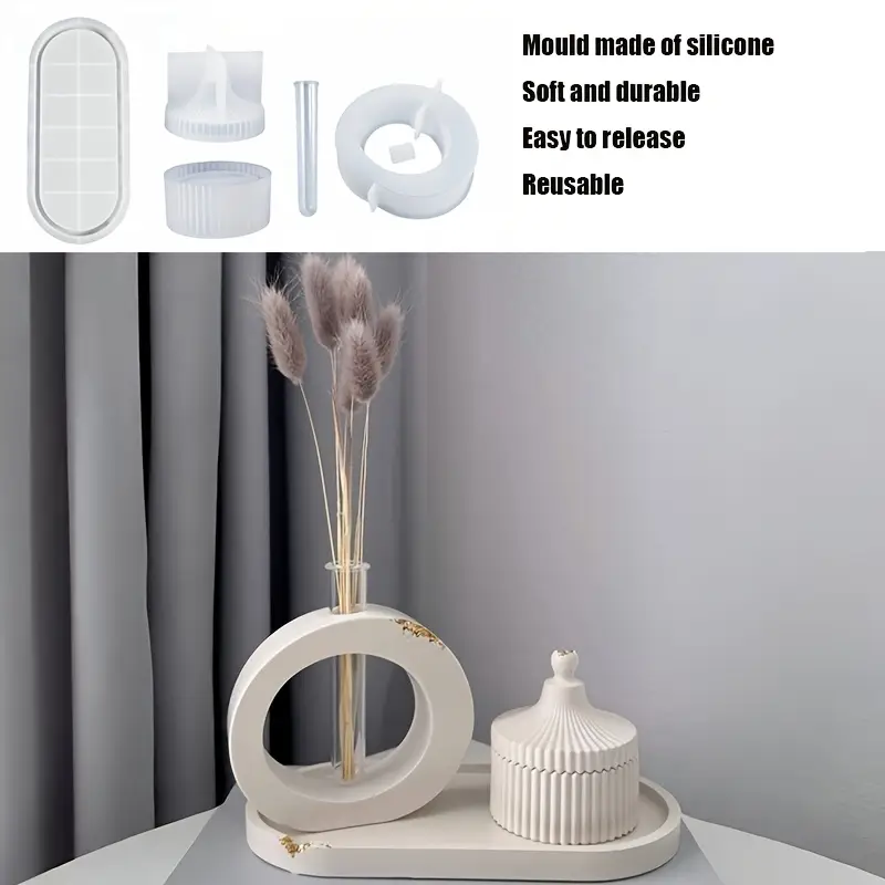 3 قطع/مجموعة قوالب سيليكون بيضاوية، اصنع صواني زخرفية متعددة الاستخدامات، فازة ترند بوبونيرة ترند كوستر 18 سم