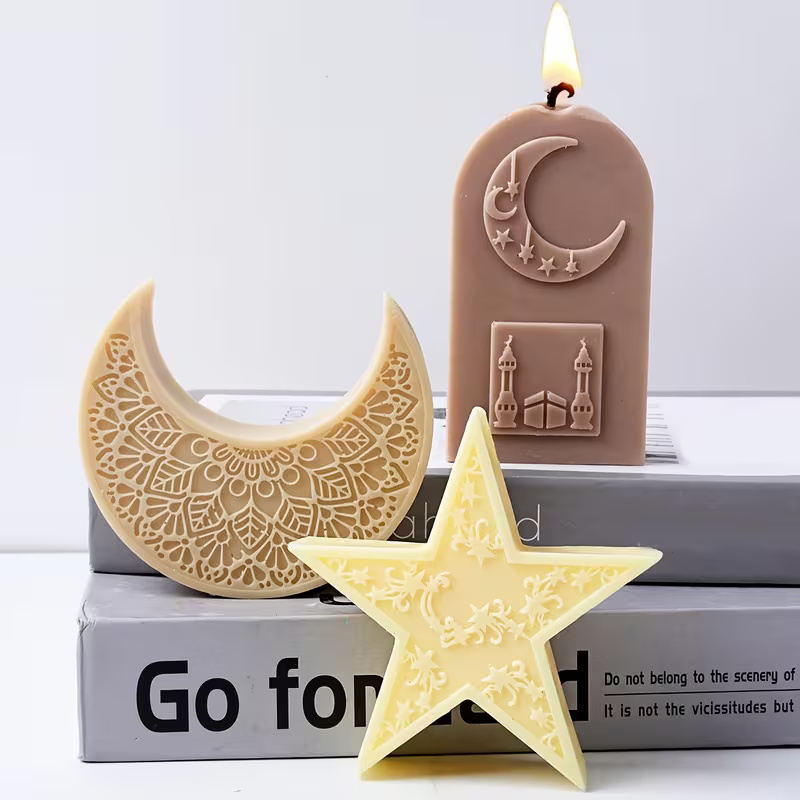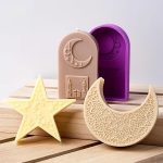 قوالب سيليكون على شكل نجمة وقمر للشموع والكونكريت هدايا لرمضان 3 قوالب عرض خاص