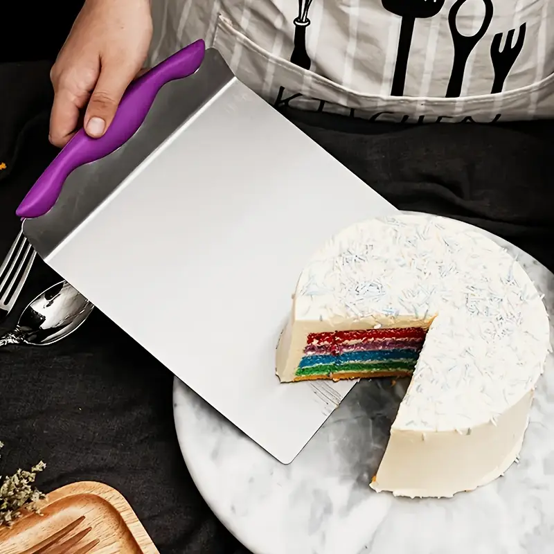 رافعة كيك آمنة من الفولاذ المقاوم للصدأ مع مقبض من السيليكون – مجرفة متينة لنقل البيتزا والفطائر، مثالية للخبز والتقديم، أداة مطبخ آمنة على الطعام