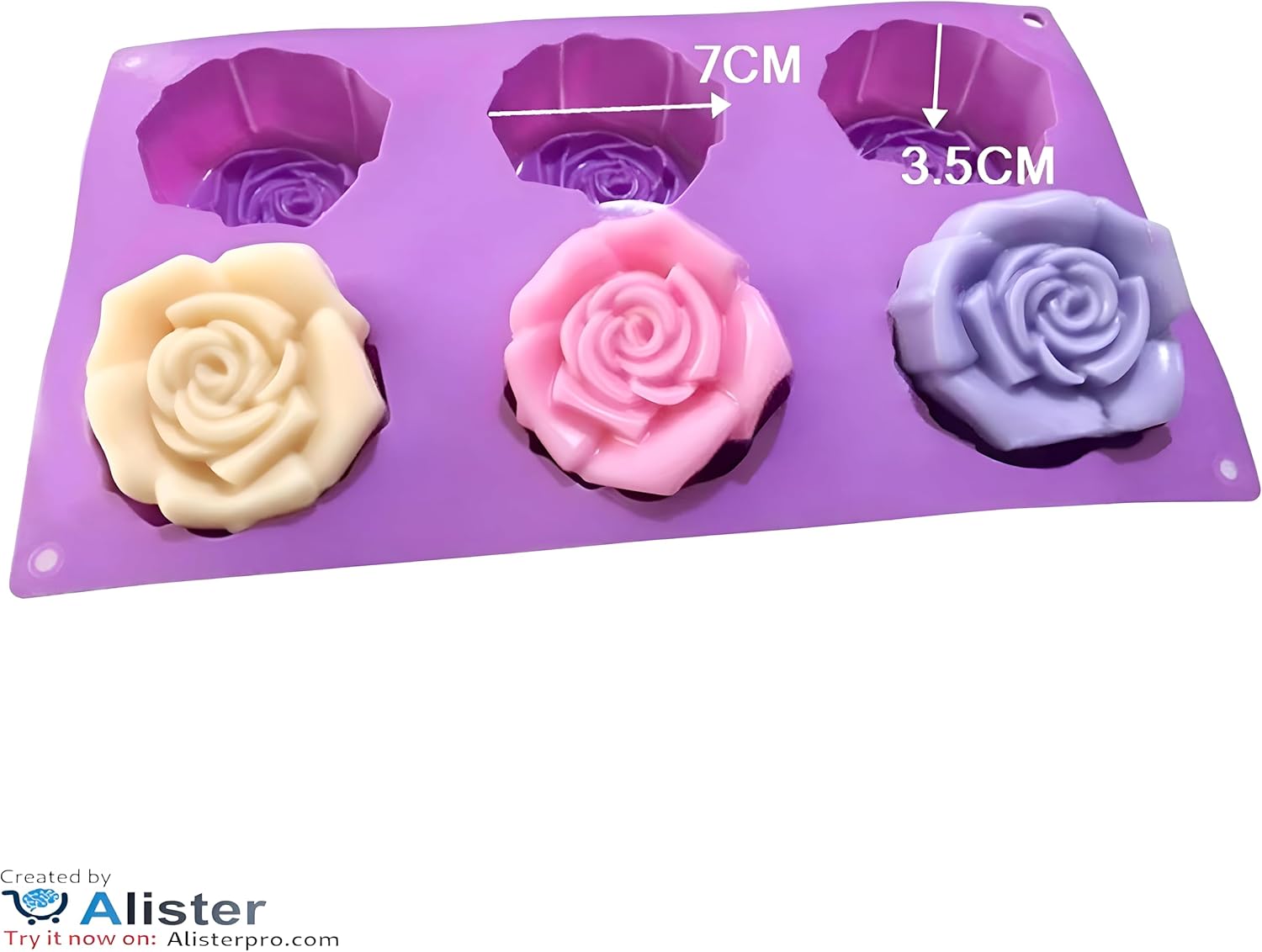 قالب سيليكون بـ 6 عيون دائرية اشكال زهور ، مناسبة للصابون المصنوع يدويًا والخبز والكيك والشوكولاتة والحرف اليدوية المنزلية