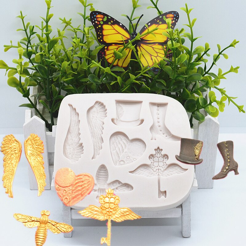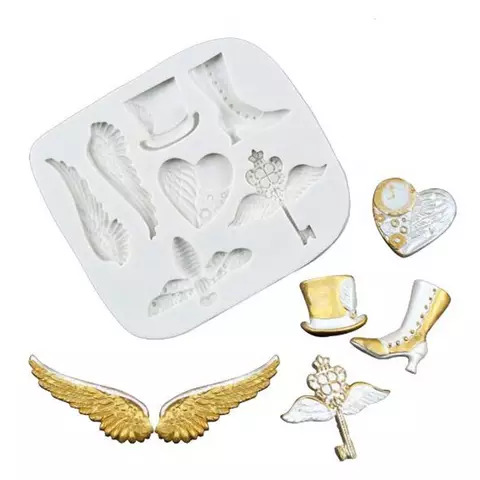 قالب سيليكون على شكل قبعة و جناح ملاك و سلسلة ماجيك لتزيين الكيك والبسكويت والكوكيز والصابون والسكر والبودنغ والشوكولاتة والحلوى الصلبة والشموع