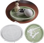 طبق دائري من الراتينج قالب سيليكون من الجبس الأسمنتي مقاس 22سم مطبوع يدويًا صينية تخزين قاعدة وعاء الزهور طبق من الجبس قالب صب الحرف اليدوية لتزيين المنزل