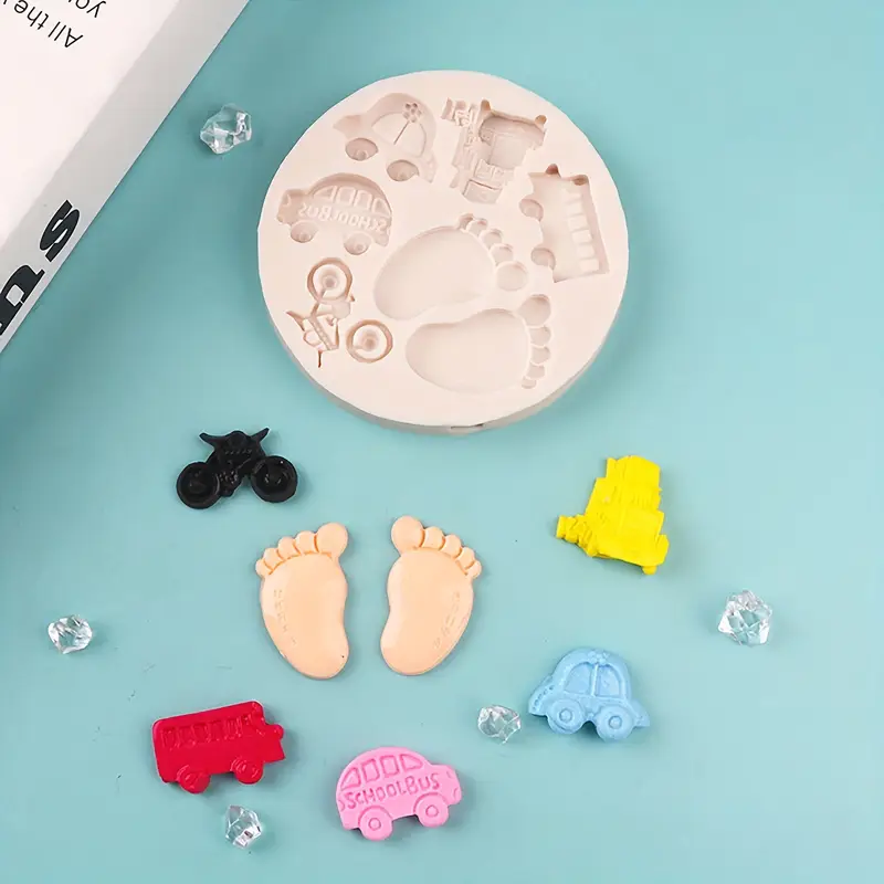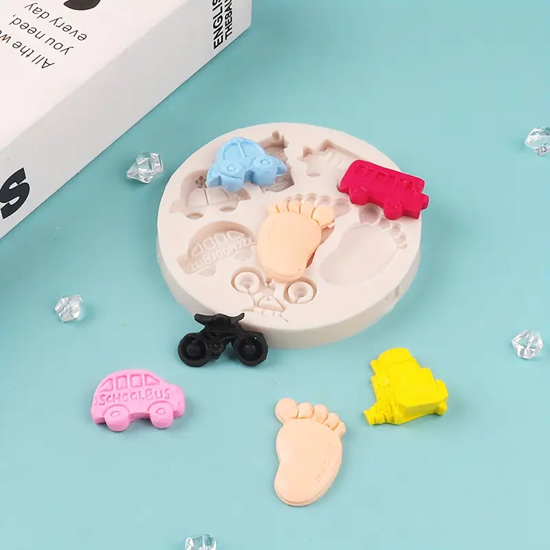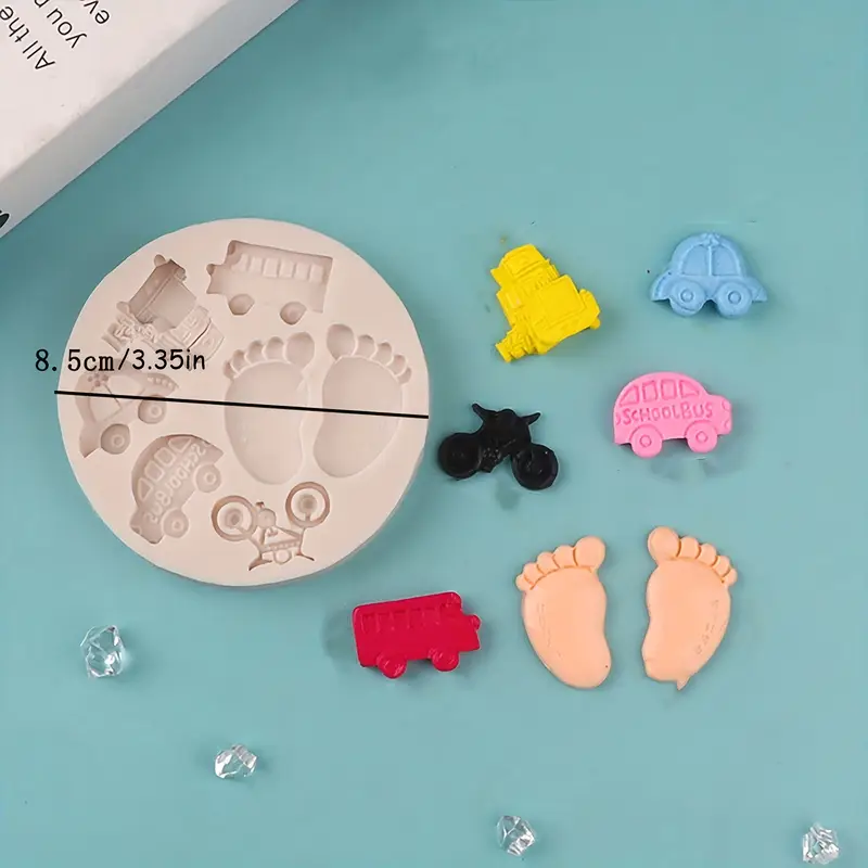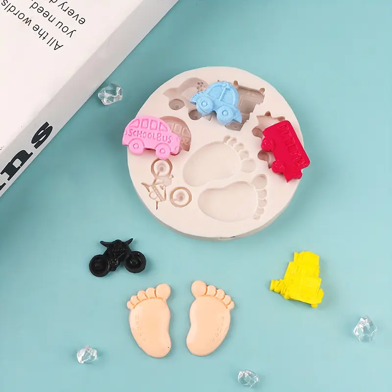 قالب سيليكون على شكل بصمة قدم وسيارة للشوكولاتة والفوندان، توزيعات السبوع
