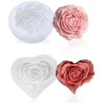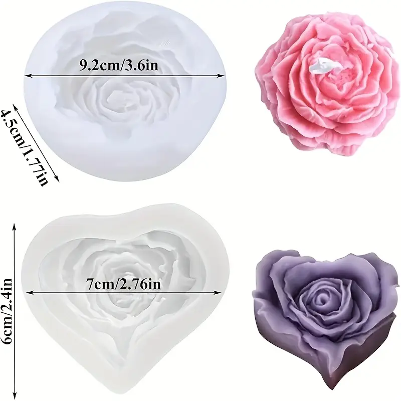 عرض خاص 2 قالب الجورى وردة 9 سم وقالب قلب بورده قوالب سيليكون للشموع كيك صابون