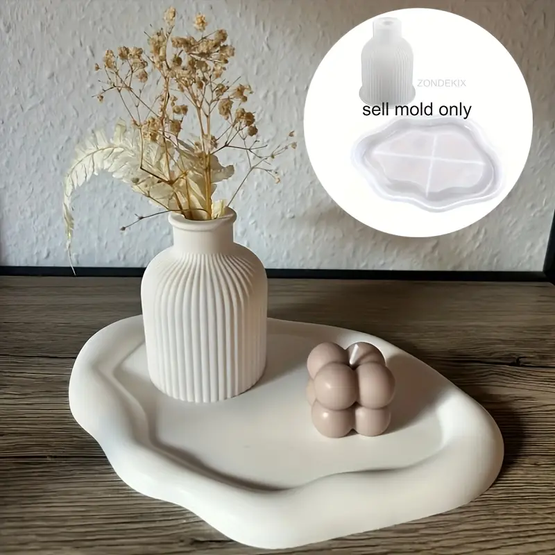 عرض خاص 2 قالب سيليكون كونكريت فازة ترند مع طبق كوستر سحابة عشوائي