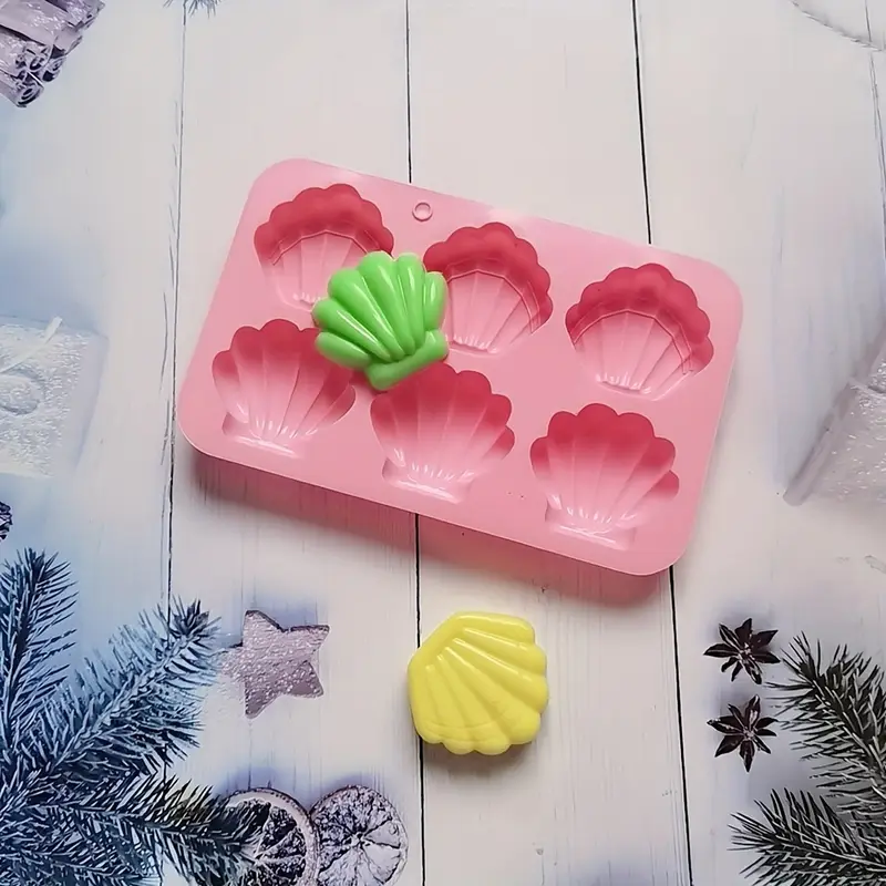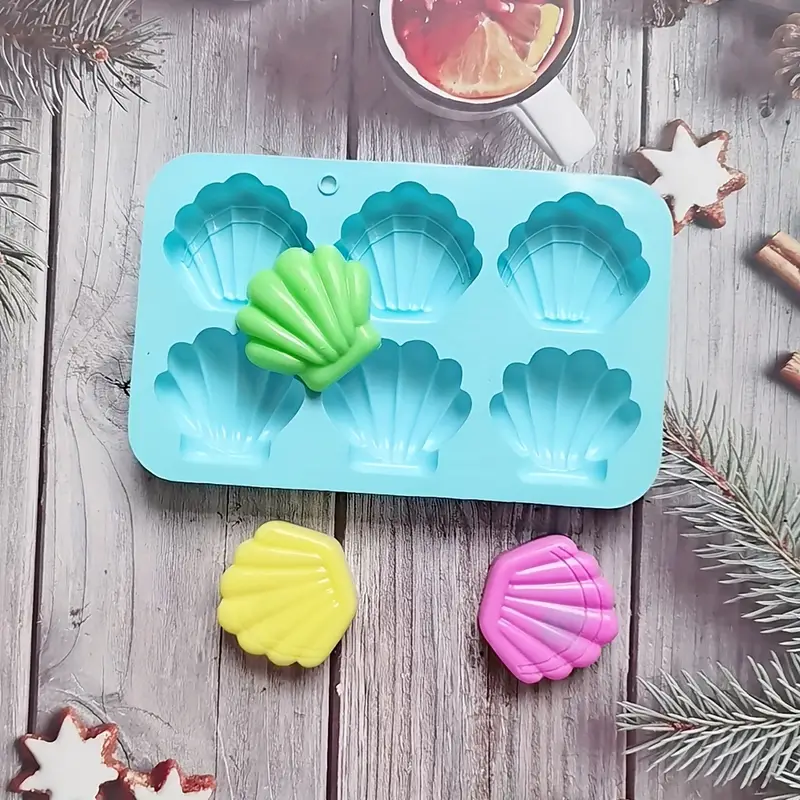 قالب السيليكون على شكل صدف بحرى 6 تجاويف، قالب بسكويت الشوكولاتة الفوندان غلاف ثلاثي الأبعاد، قالب تزيين الكيك، شموع معطرة بالصابون، قالب الجبس،