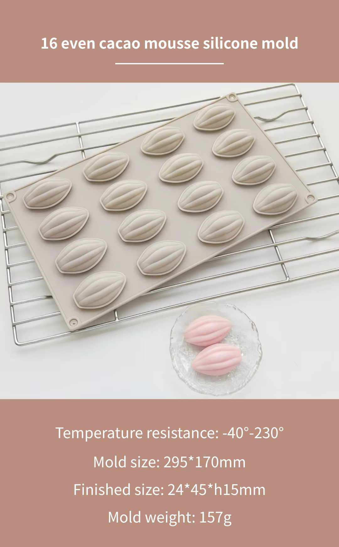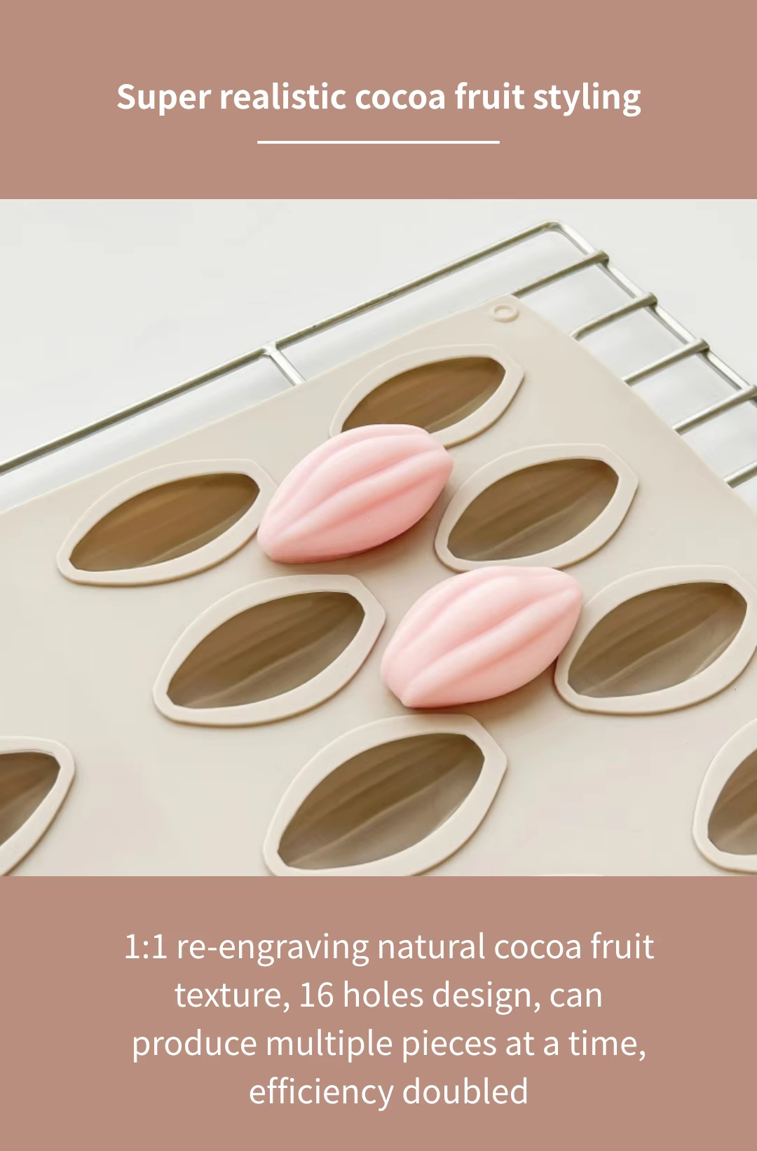 المنتج الموضح في الصورة هو قالب سيليكون للخبز والتجميد على شكل حبة كاكاو، . يمكن استخدام هذا القالب لعمل الحلويات الصغيرة والكعك والشوكولاتة.