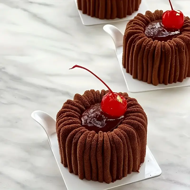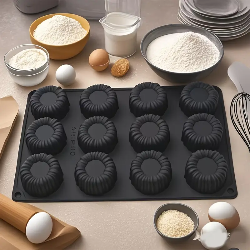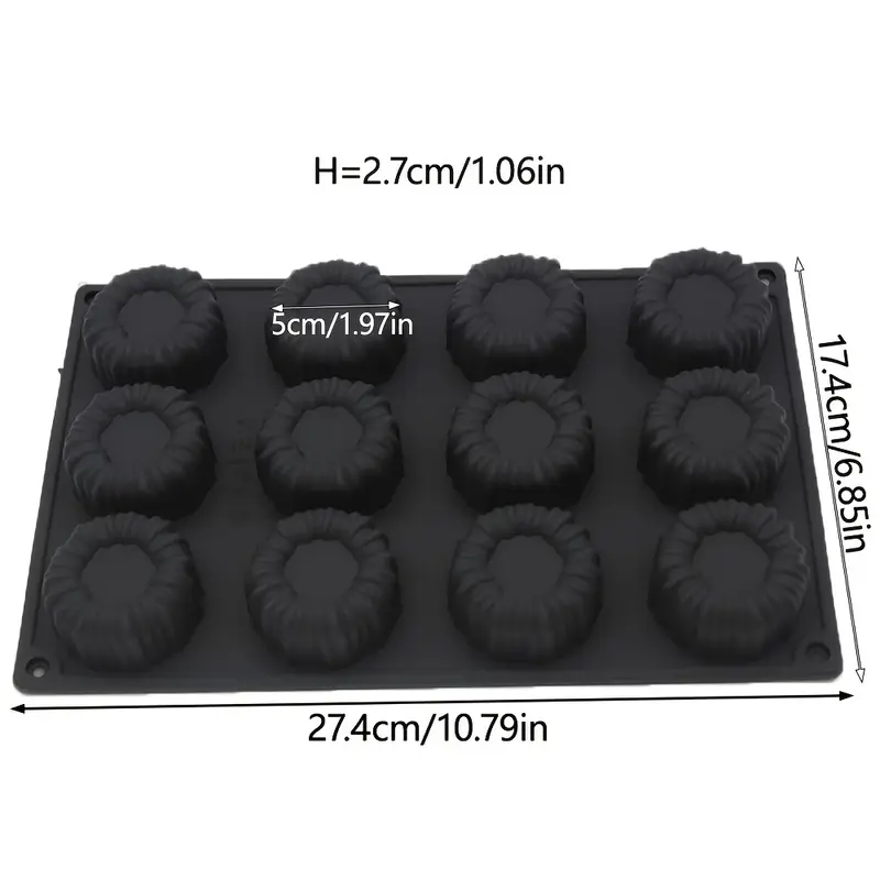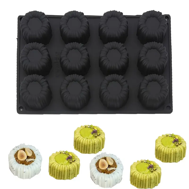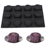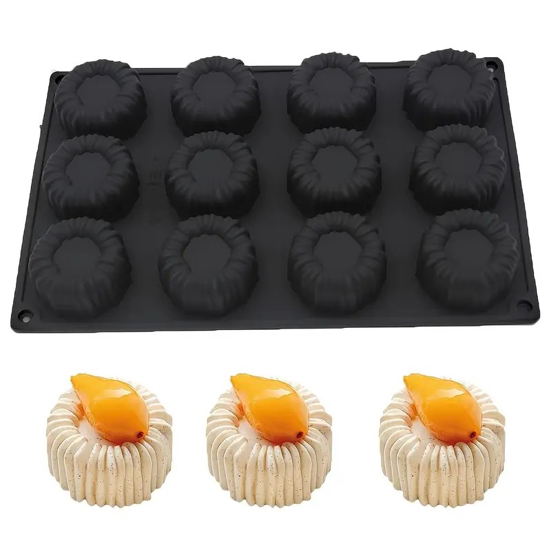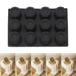 قالب سيليكون أسود موس كيك للحلويات الفرنسية للشوكولاتة والجيلي والموس – أسطوانية بتصميم مُخدد 3D، مقاوم للحرارة، 12قطعة
