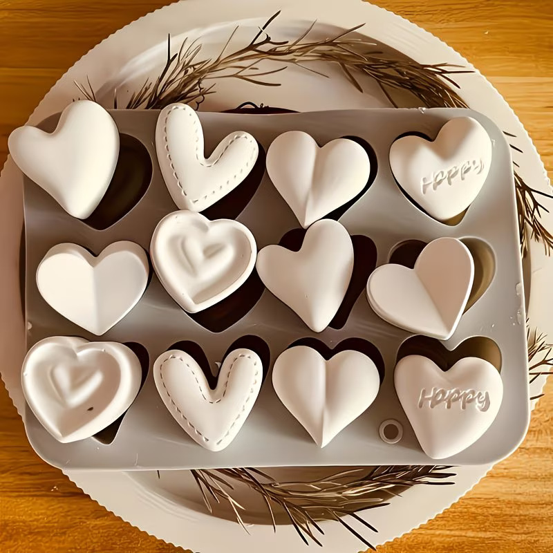قالب سيليكون اشكال قلوب منقوشه عيد الحب شوكولاته تزين شموع وصابون