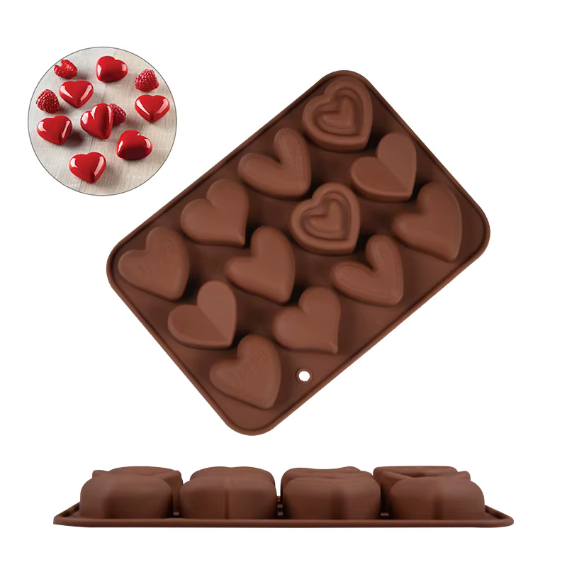 قالب سيليكون اشكال قلوب منقوشه عيد الحب شوكولاته تزين شموع وصابون