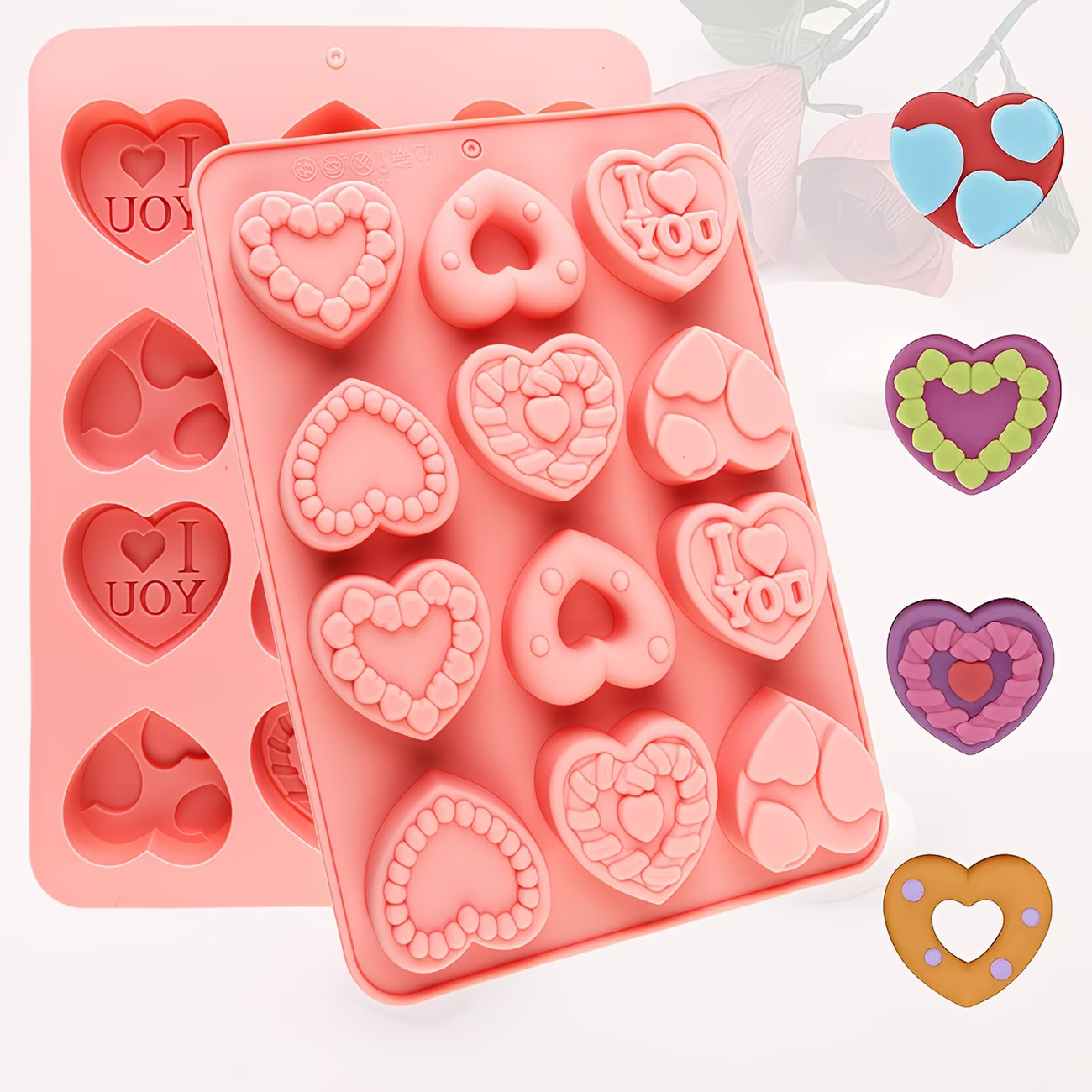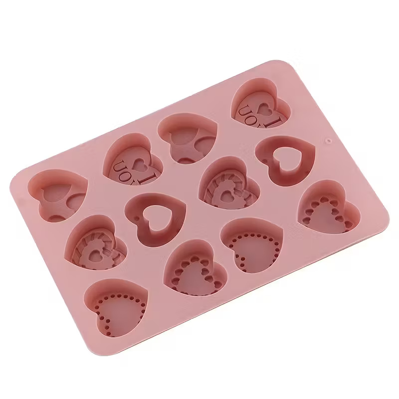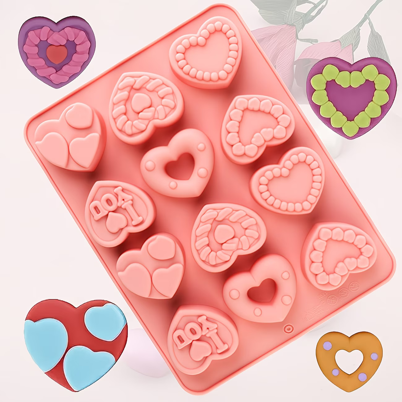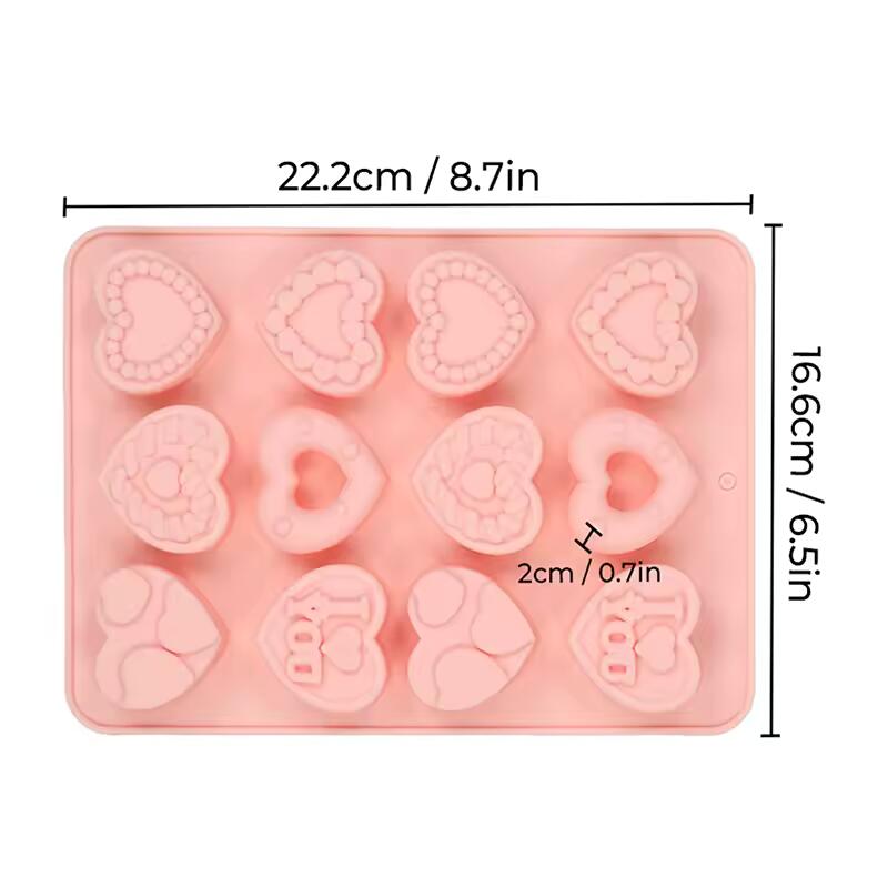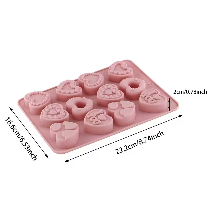 قالب سيليكون اشكال قلوب منقوشه عيد الحب شوكولاته تزين شموع صابون
