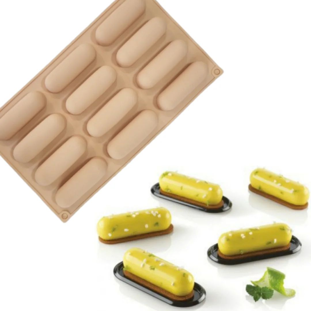 قالب سيليكون اكلير موس كيك شوكولاته 12 قطعة طول 7.2 سم عرض 2 سم