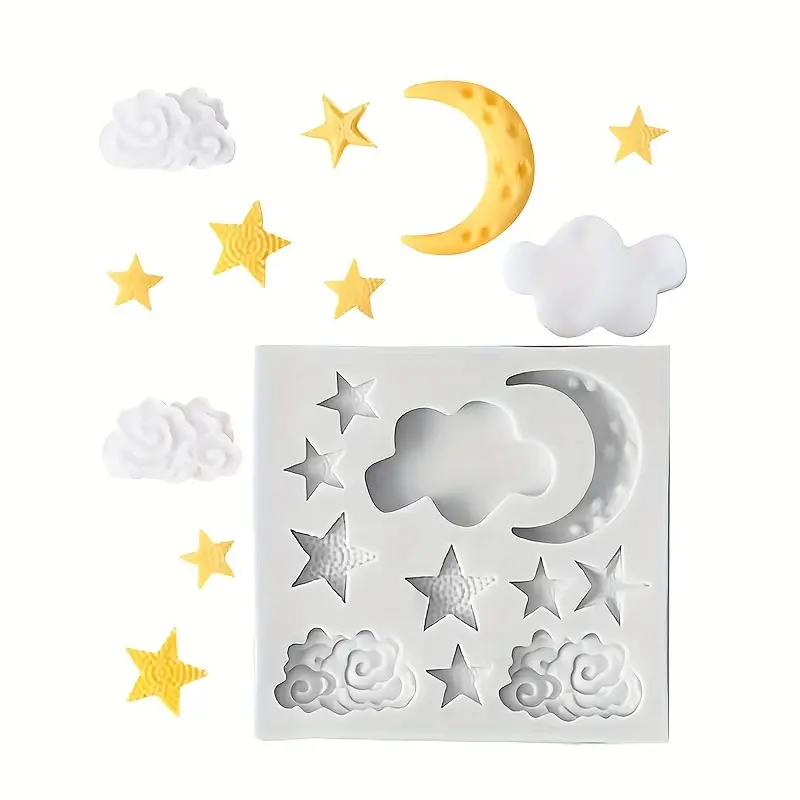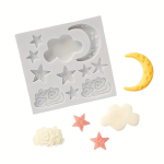 قالب سيليكون تزين كيك و لتشكيل عجينة السكر بشكل هلال وسحابة ونجوم
