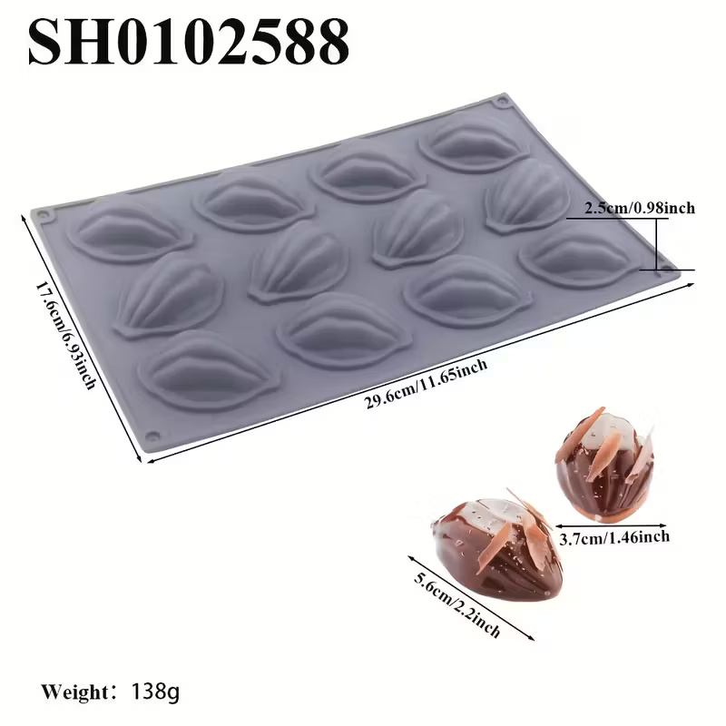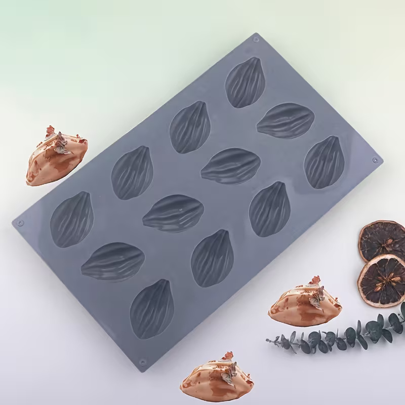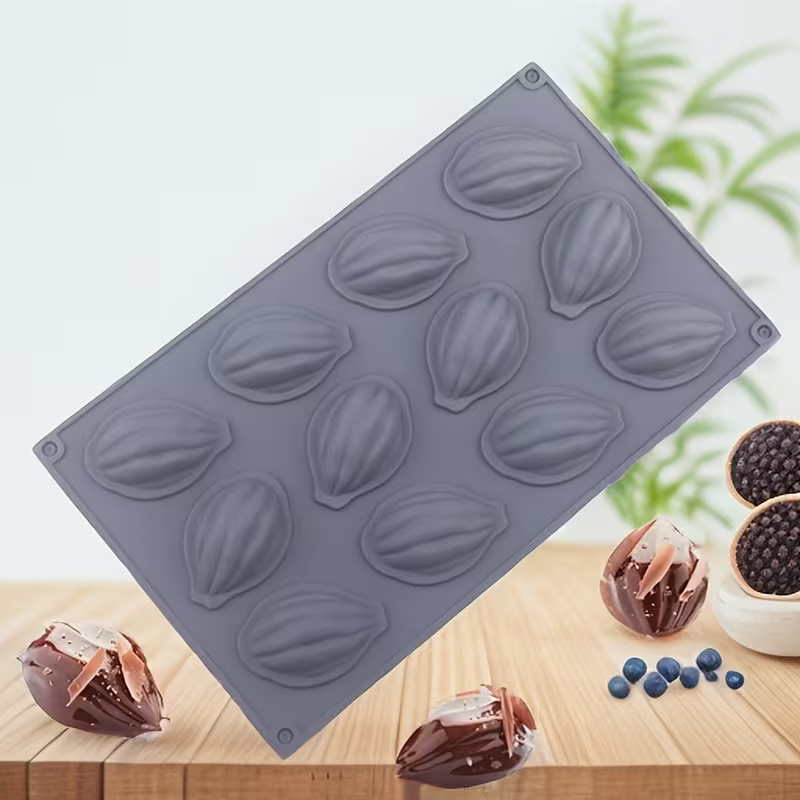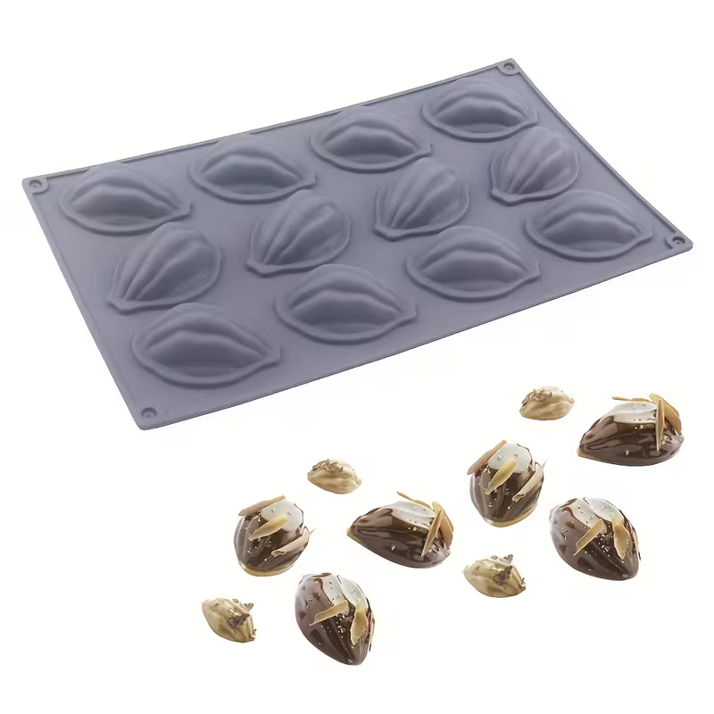 قالب سيليكون شكل الجوزية لصنع حلويات البندق و الشوكولاتة والكيك بـ 12 تجويف