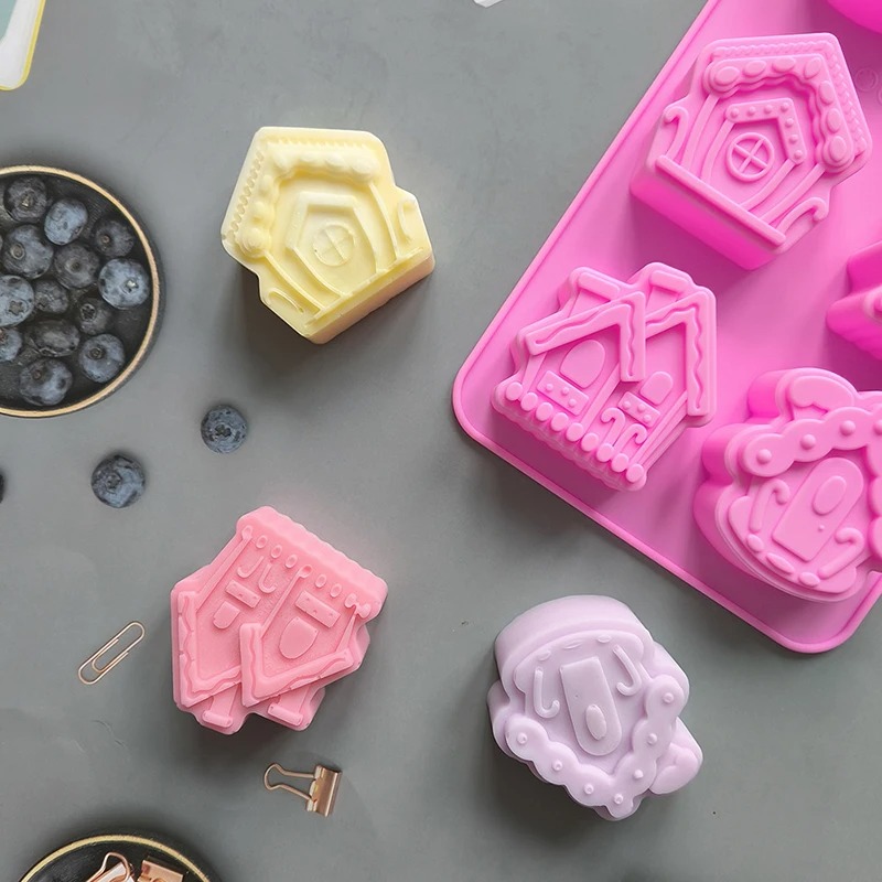 قالب سيليكون شكل بيت منزل متعدد الاستخدام صابون شمعة كيك عيد الميلاد