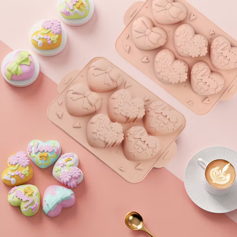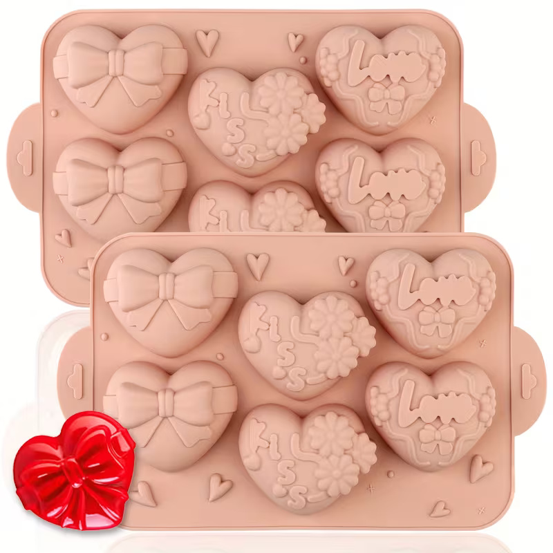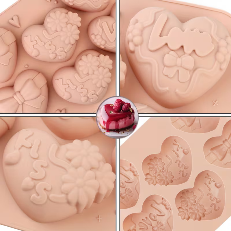 قالب سيليكون موس كيك شكل قلب مشقوق متصل