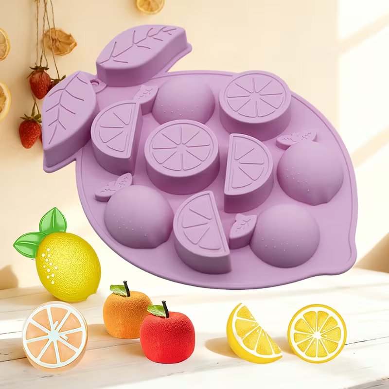 قالب سيليكون شكل ليمون وبرتقال مناسب للخبز والصابون والشموع والحرف اليدوية | جيلي الفواكه والموس والكيك، مقاوم للحرارة، هدية مثالية للعطلات