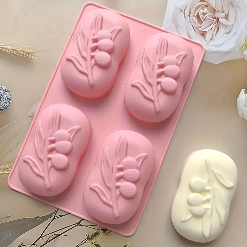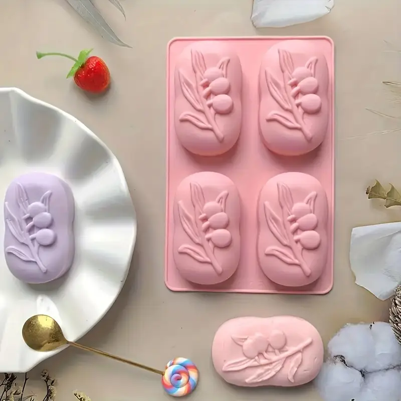 قالب صابون سيليكون 4 قطع مستطيل – 2 بيضاوي – منقوش لعمل الصابون،