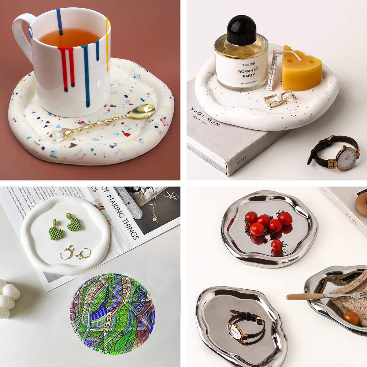 【استخدام واسع】 قالب مثالي لقالب صينية تخزين النظارات من الراتينج، وأطباق لطيفة، ويمكن استخدامه لتخزين الأقراط والخواتم والعملات المعدنية والمفاتيح وغيرها من العناصر الصغيرة.