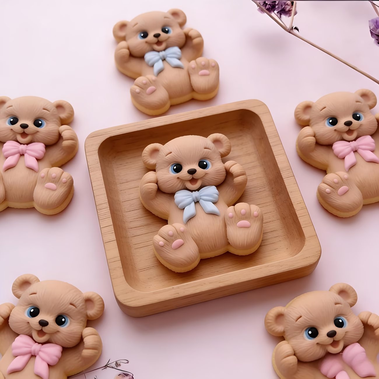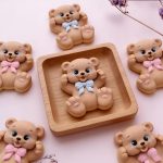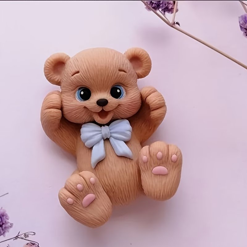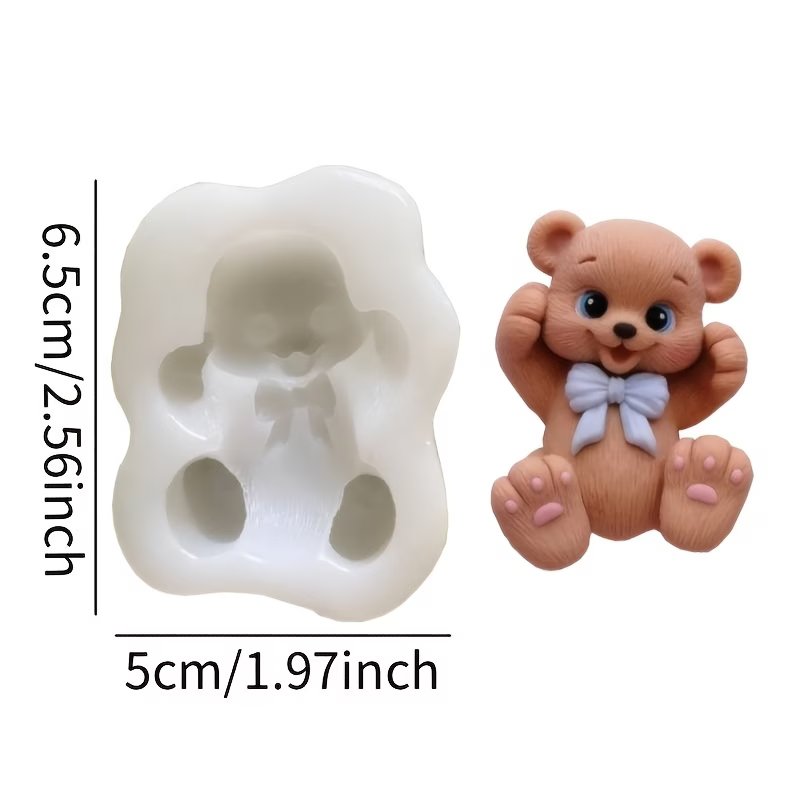 قالب سيليكون على شكل دب فيونكة تزين كيك شموع