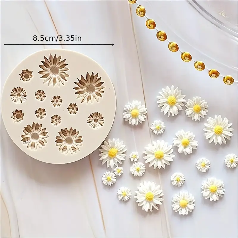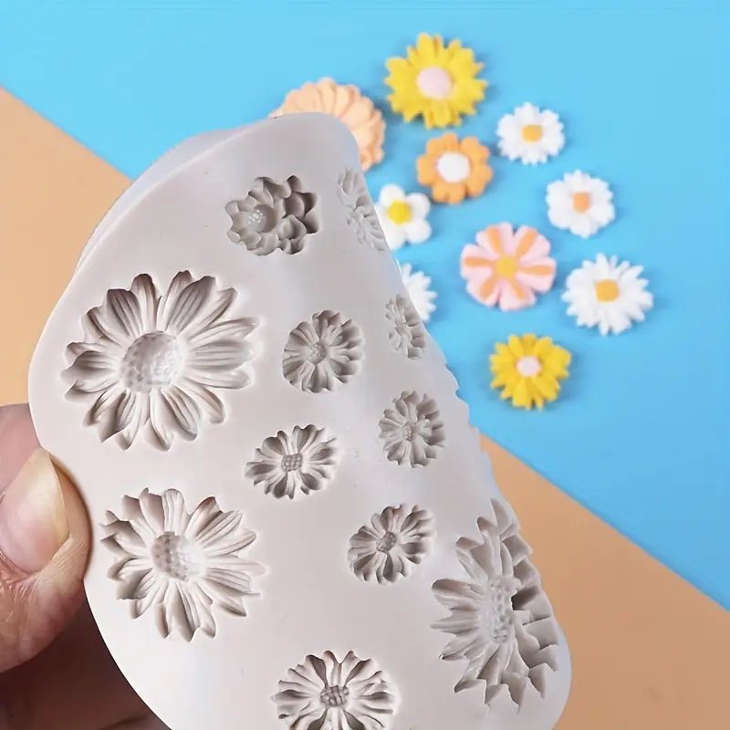 قالب سيليكون على شكل زهرة ديزي صغيرة ثلاثية الأبعاد – مثالي عجينة السكر والكعك والحلوى والشوكولاتة وحرف السكر وخبز المعجنات المثلجة – قابل لإعادة الاستخدام، غير لاصق، سهل التنظيف،