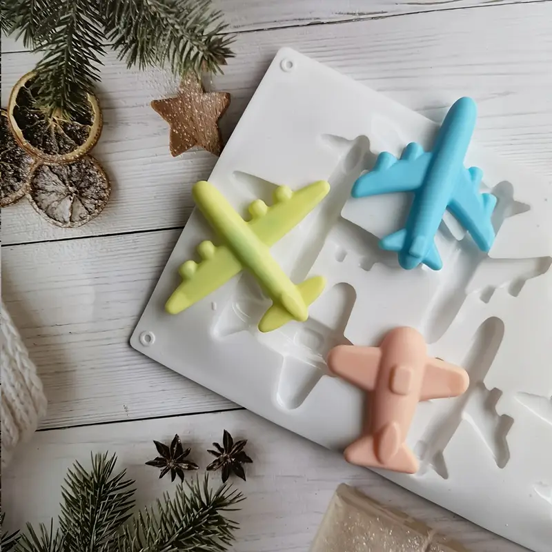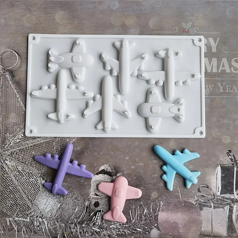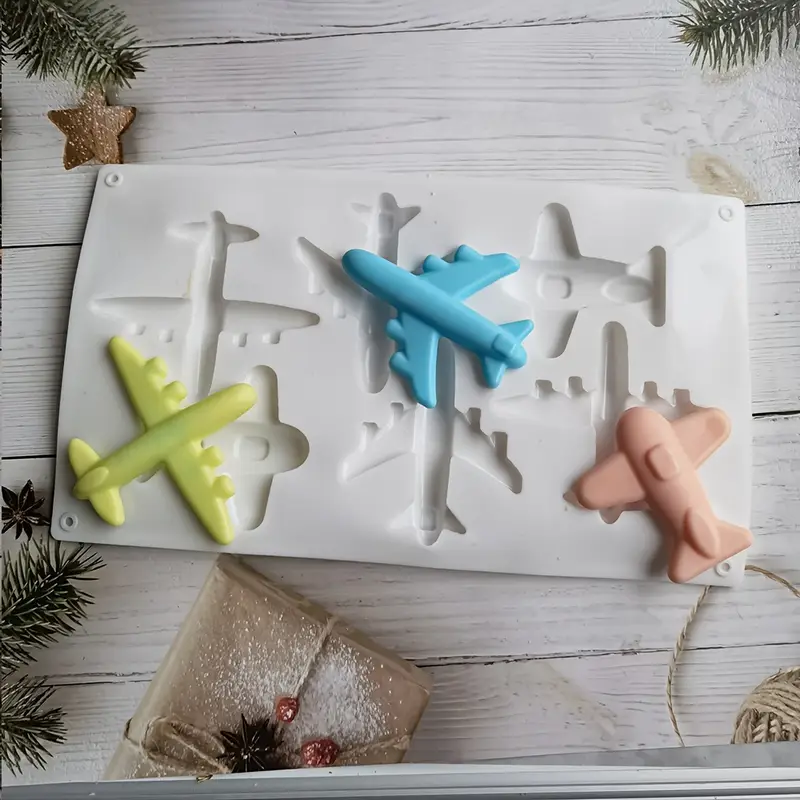 قالب سيليكون على شكل طائرة بستة تجاويف لصنع الشوكولاتة والآيس كريم والحلويات محلية الصنع