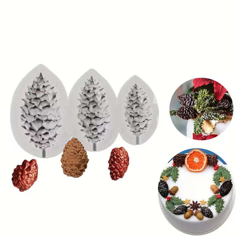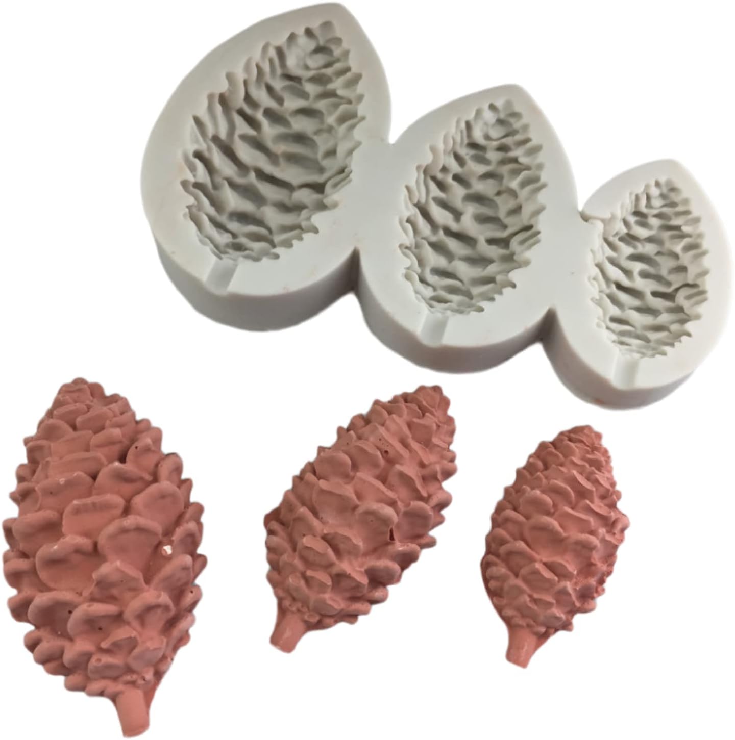 قالب سيليكون على شكل مخروط صنوبر، 3 تجاويف، لتزيين الكيك والكب كيك بعجينة السكر