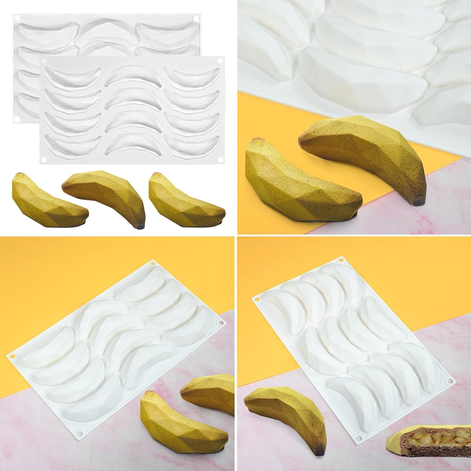 قالب سيليكون موس كيك على شكل موز، ثلاثية الابعاد، للشوكولاتة والمافن غير لاصق للخبز والصابون والجيلي