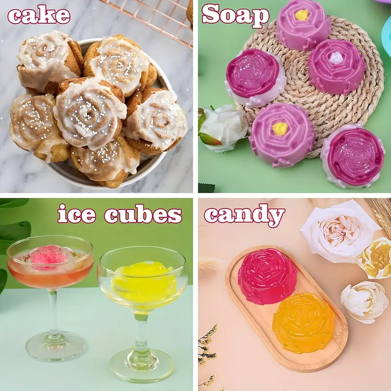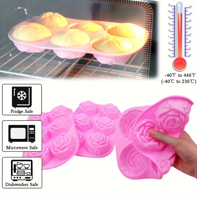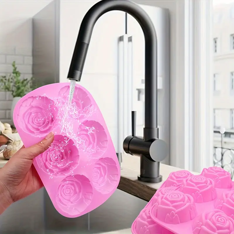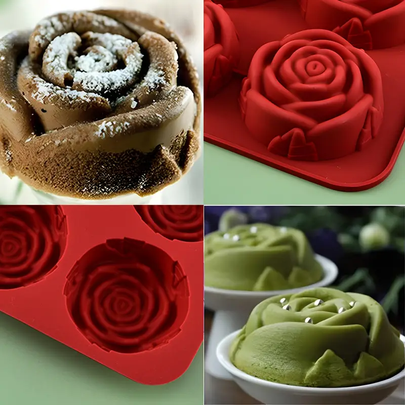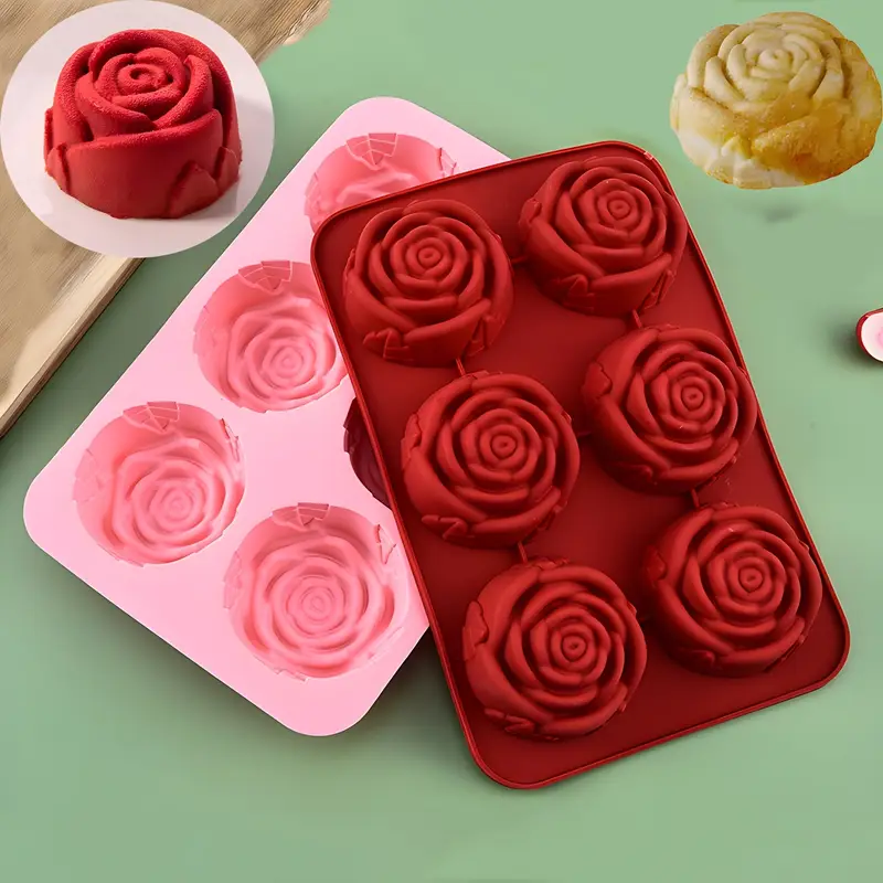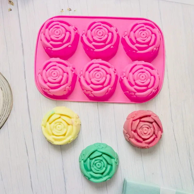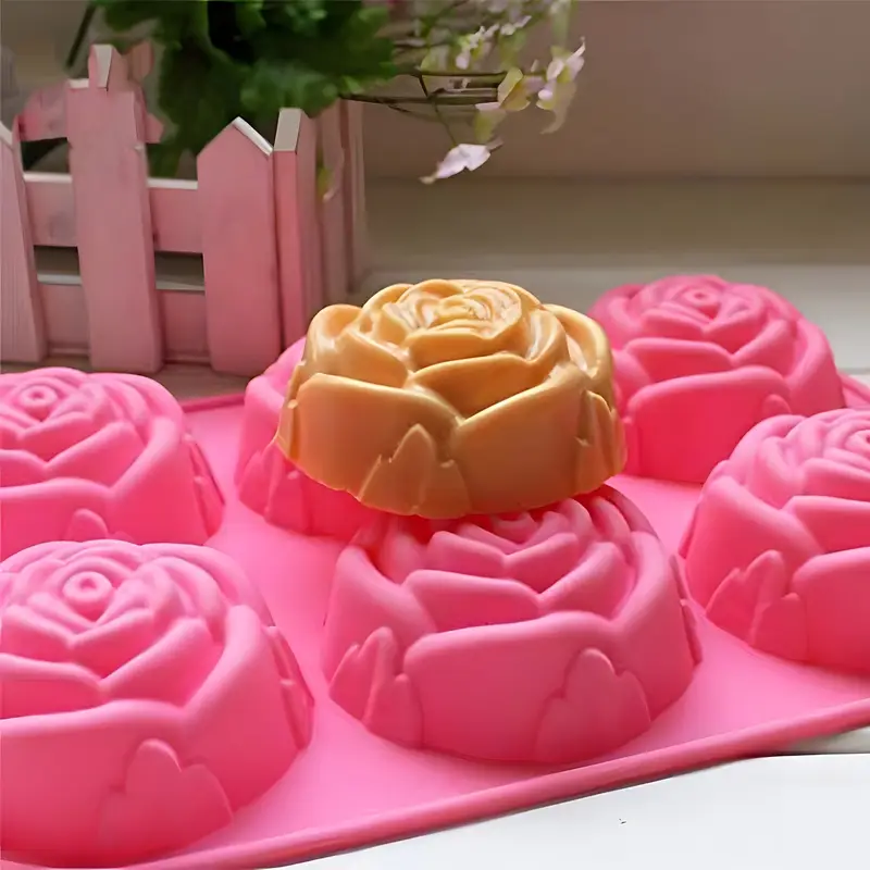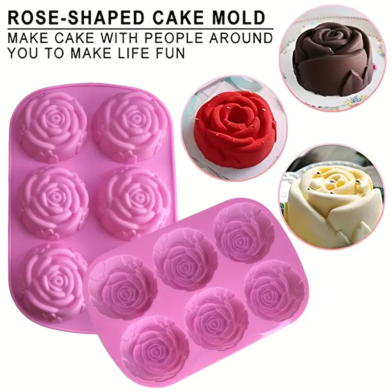 قالب سيليكون على شكل وردة بستة تجاويف للكعك والشوكولاتة
