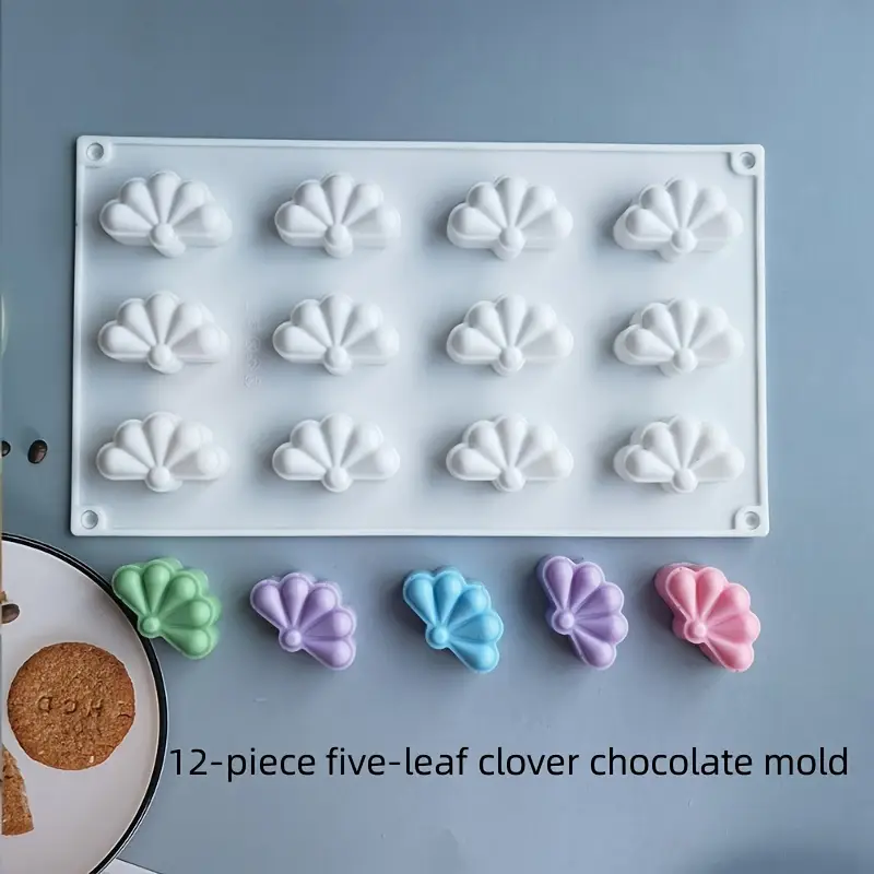 قالب سيليكون فينش موس كيك على شكل نبات البرسيم بـ 12ثقبًا – قطع لصنع الشوكولاتة والفوندان وكوكي وجيلي
