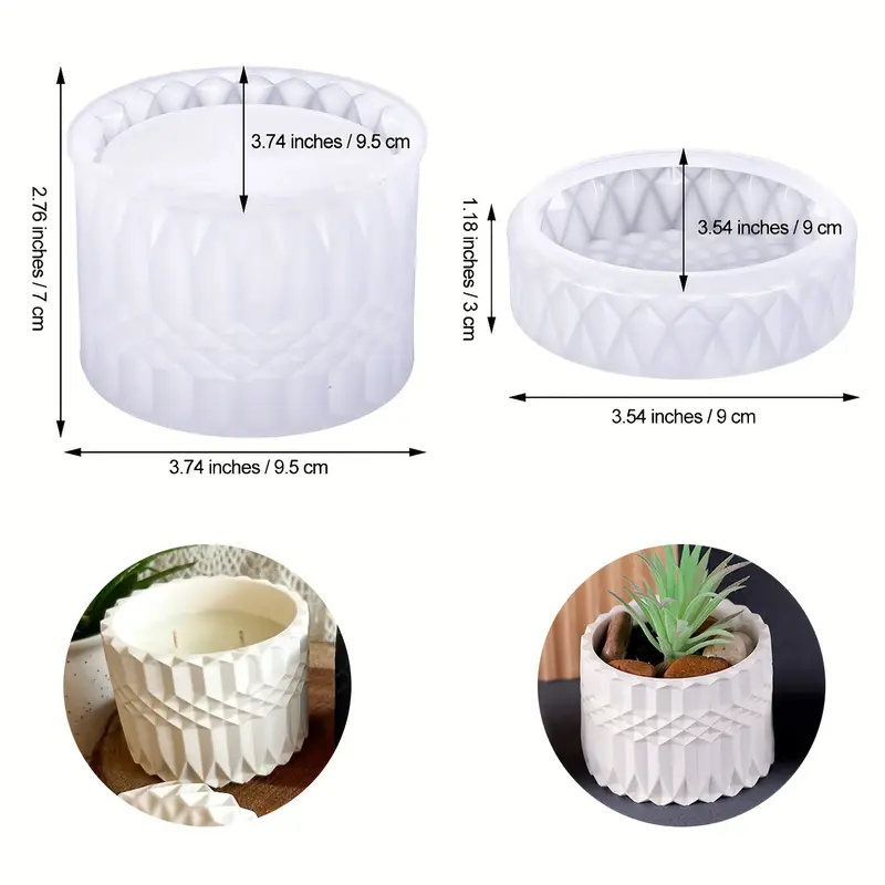 2 قالب سيليكون بابلز كونكريت مربع ومدور صنية حامل اكواب