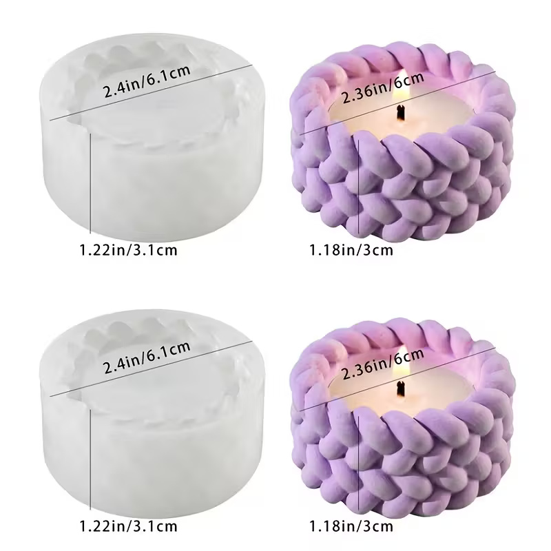 قالب سيليكون كونكريت حامل شموع تى لايت مدور ملفوف وقلب ملفوف