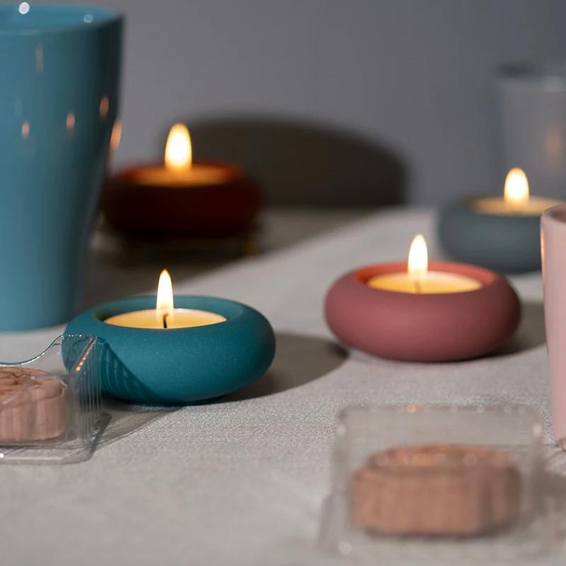 قالب سيليكون كونكريت حامل شموع تى لايت شكل دائري