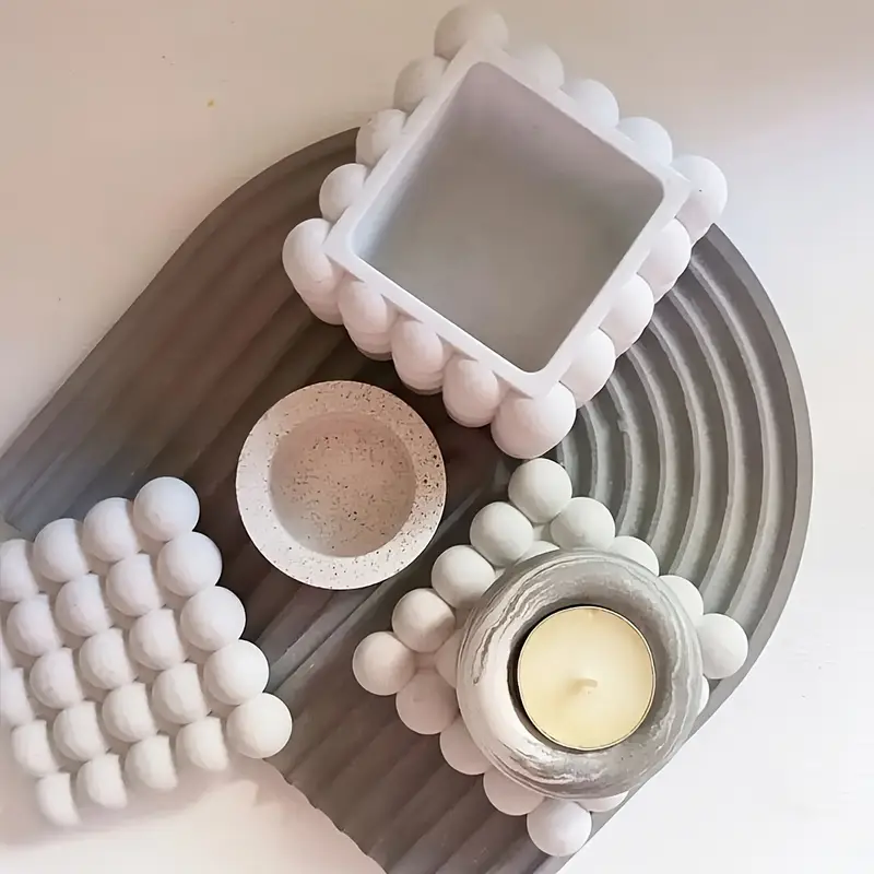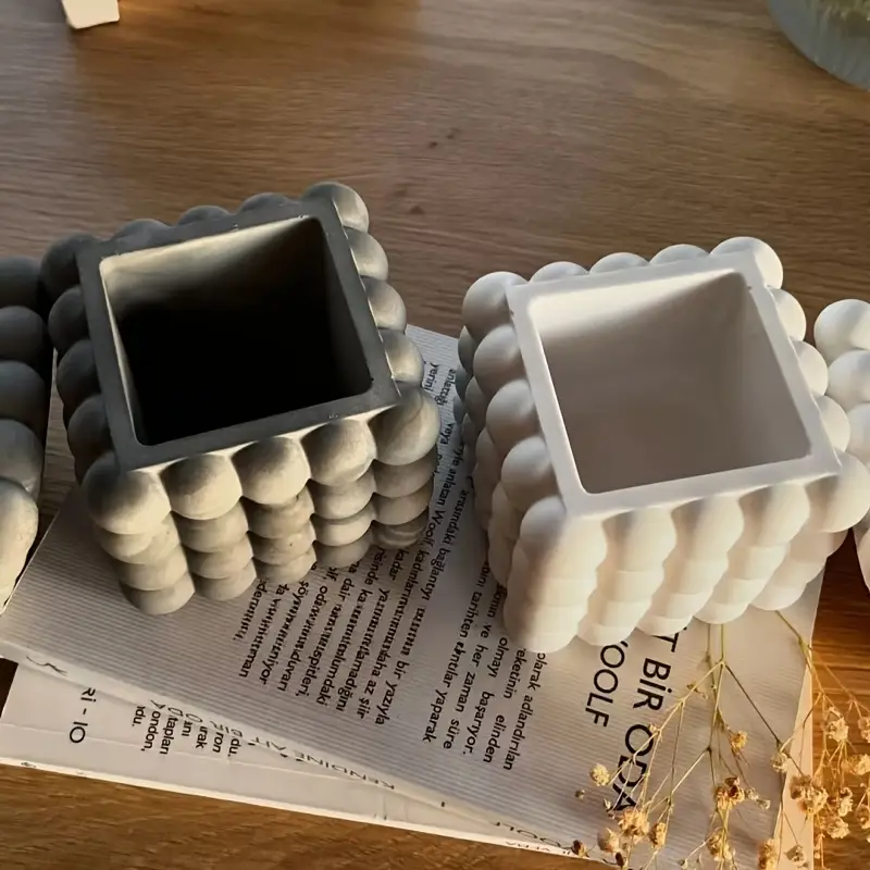 قالب سيليكون كونكريت حامل شموع على شكل مربع بابلز