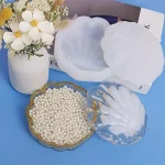 قالب سيليكون كونكريت على شكل صدفة بحرية من قطعتين صندوق تخزين مجوهرات ، قوالب صب كونكريت و إيبوكسى من السيليكون