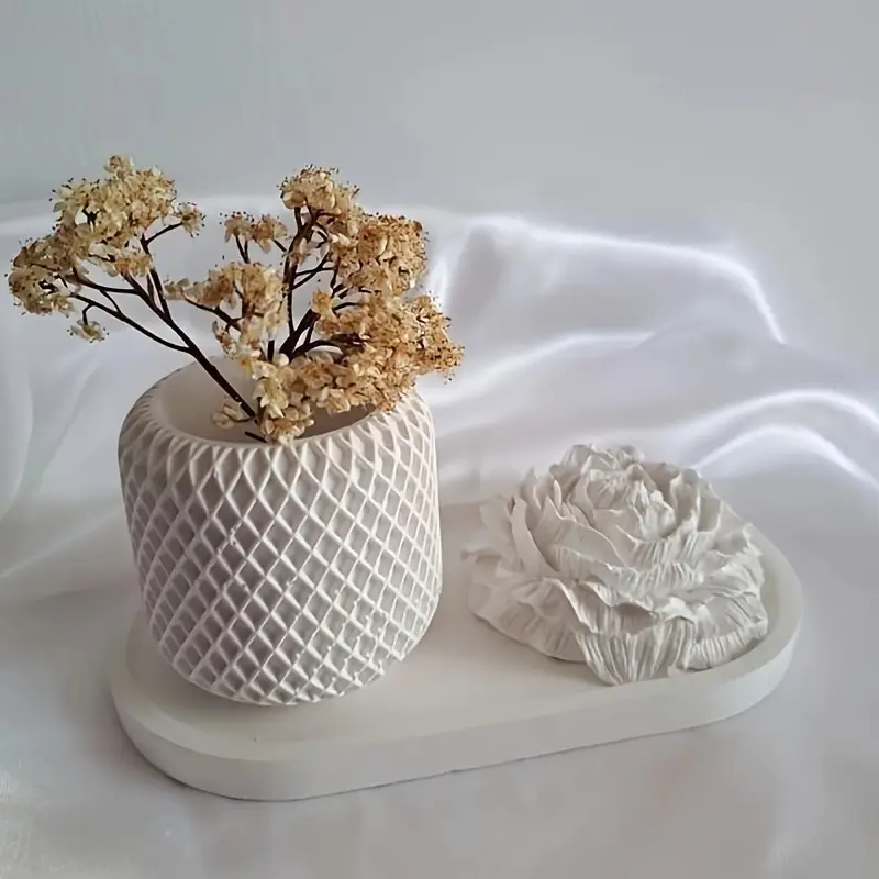 قالب سيليكون كونكريت كوب تخزين شبكى وحامل شموع