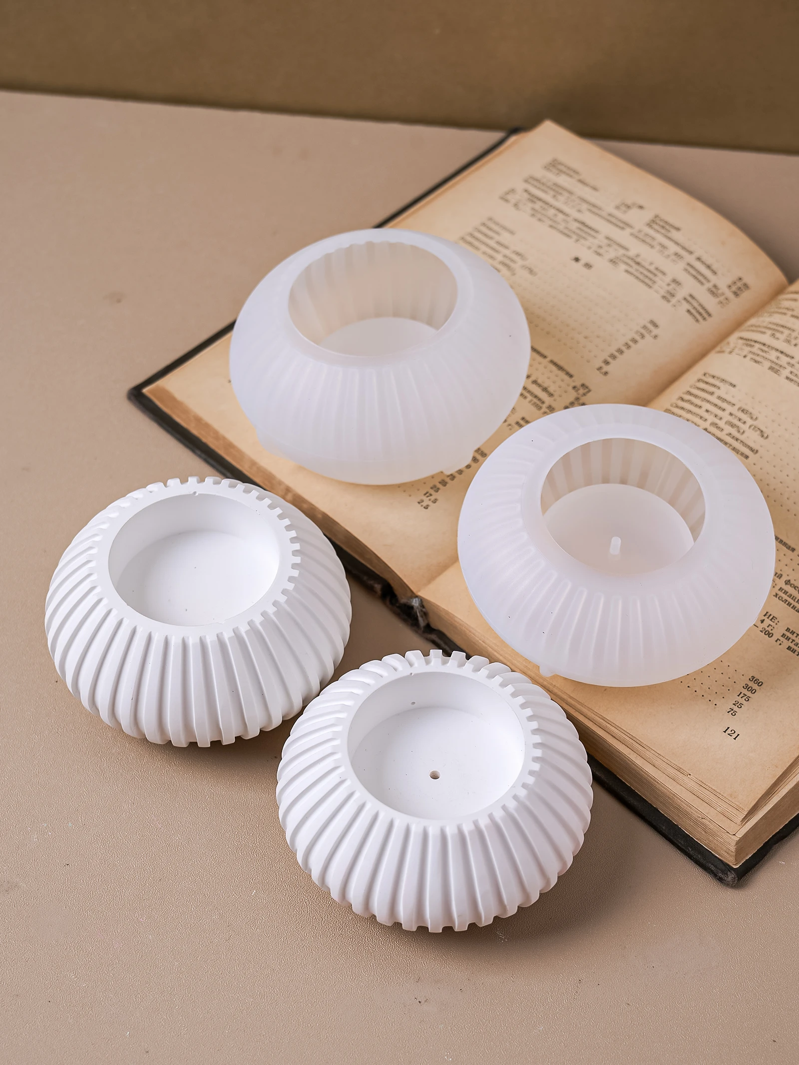 قوالب سيليكون كونكريت 4 قوالب صنية 26 سم فازة تيوليب مدورة قوقعة سكرية