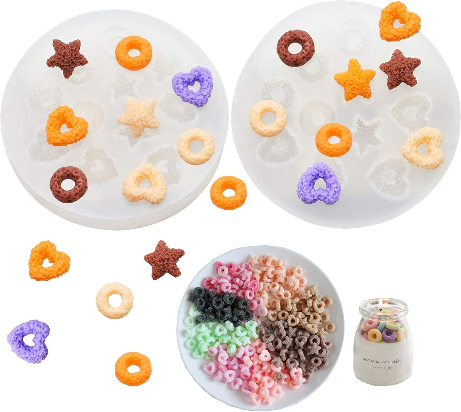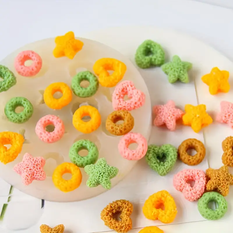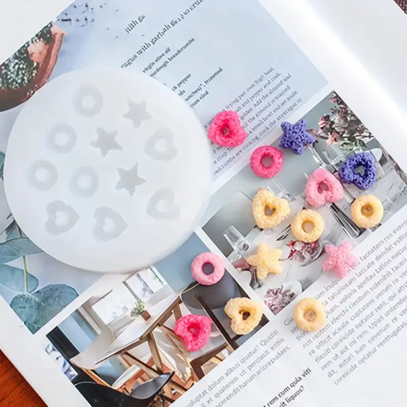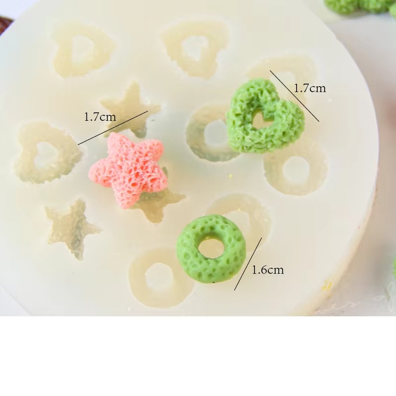 قالب سيليكون للشموع بقطر حوالي 1 سم، بثلاثة أشكال خواتم ونجمة وقلوب للصابون الشمع