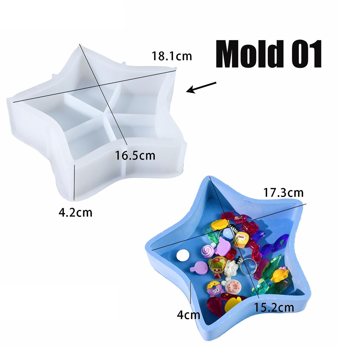 قالب سيليكون لصينية على شكل نجمة – قالب راتنج لصندوق تخزين على شكل نجمة – قالب أصيص نباتات عصارية على شكل نجمة – قالب أسمنتي خرساني – قالب ديكور من الجبس