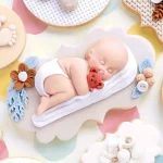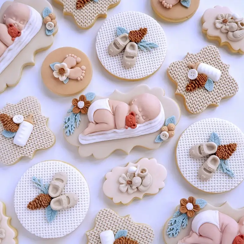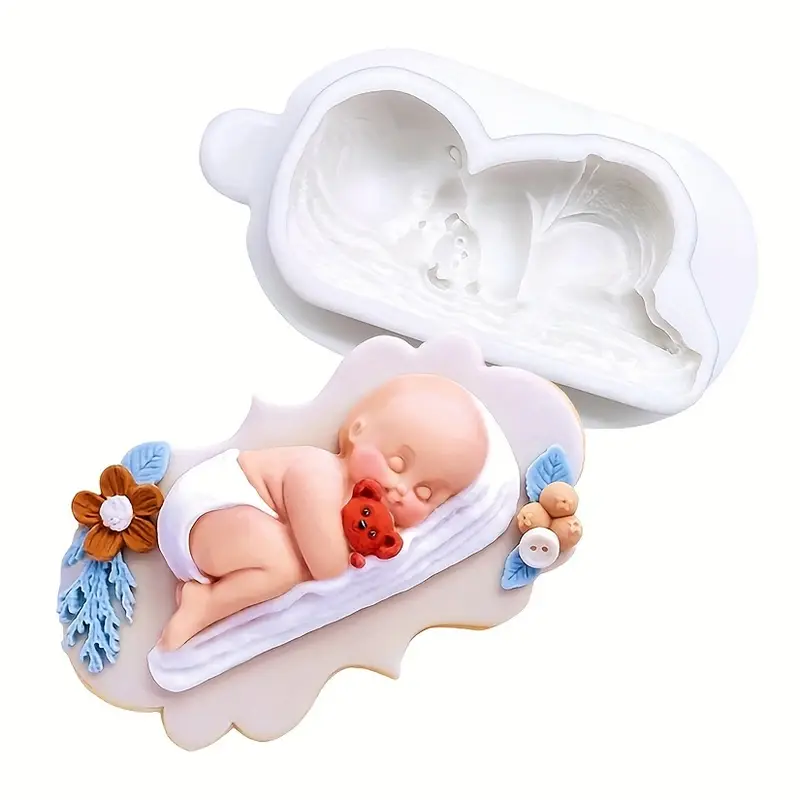 قالب سيليكون للأطفال بيبي نائم مع زهور ودب، ، تزيين الكيك، صنع الصابون ، مستلزمات الحرف اليدوية، عشاق الحرف اليدوية، قوالب الخبز، قوالب زخرفية،