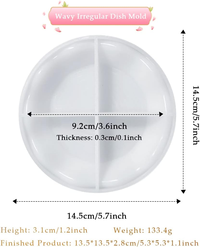 - 【قوالب صينية صغيرة من كونكريت】قالب صينية صحن السيليكون له حافة مموجة غير منتظمة، والشكل الخاص يجعلها قطعة مركزية ممتعة على أي طاولة. يمكنك إضافة اللمعان أو الترتر أو طلاء الراتنج أو الخرز أو الزهور المجففة أو غيرها من الملحقات الراتنجات إلى قوالب السيليكون لإنشاء حرفة الراتنج