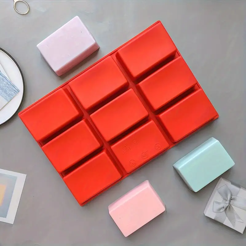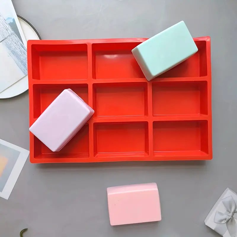 قالب سيليكون مستطيل الشكل 9 قطع ، حجم قطعة الصابونه 180 جرام 9.5*6 ارتفاع 3