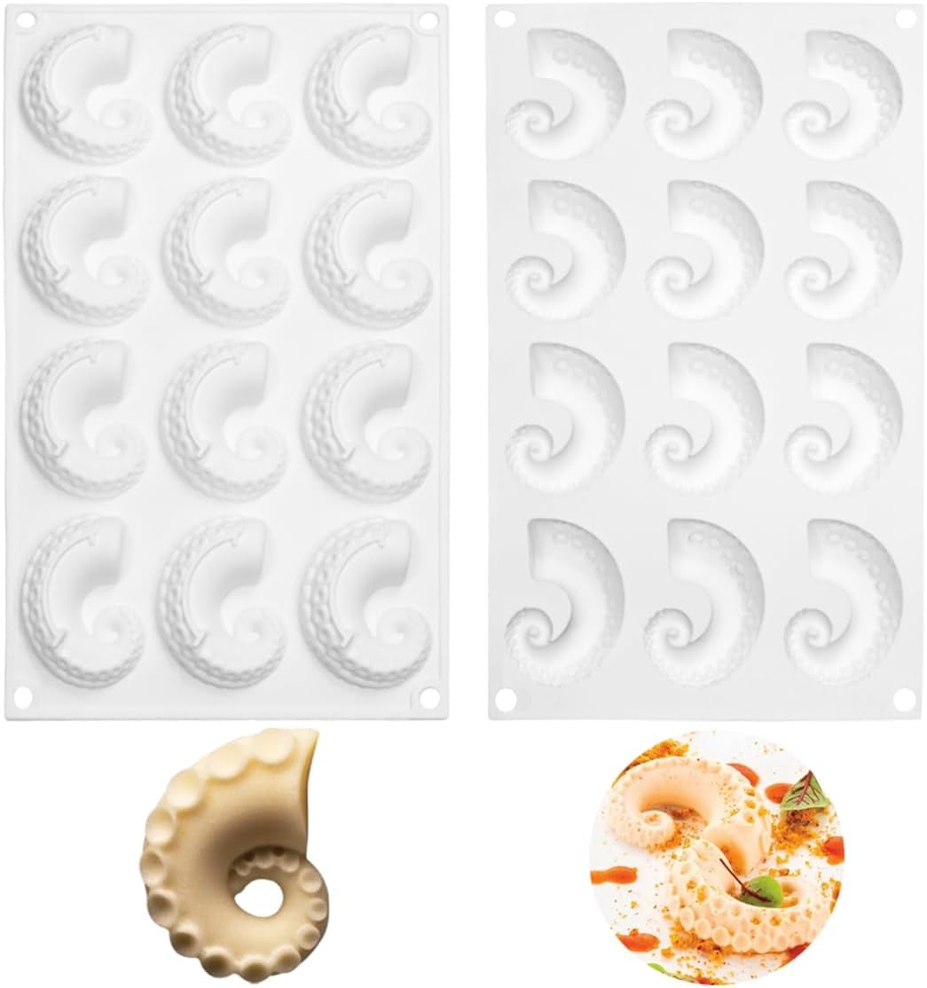 قالب سيليكون فورمة كيك موس مكون من 12 تجويفًا على شكل مخالب اخطبوط البحر، تزيين الكيك، الشوكولاتة