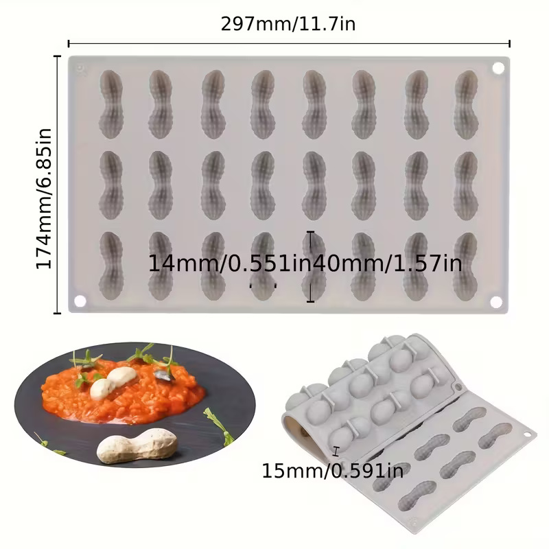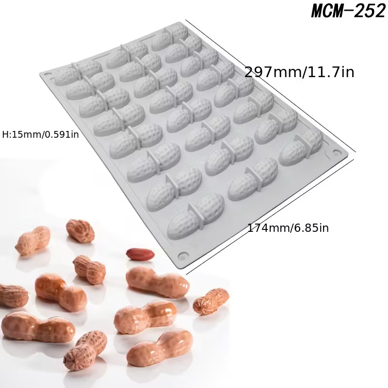قالب سيليكون موس كيك على شكل فول سوداني، للشوكولاتة والحلويات لصنع عناقيد المكسرات، جيلي