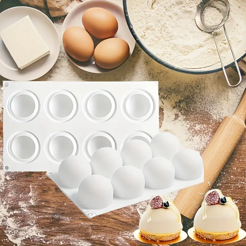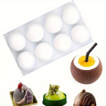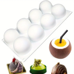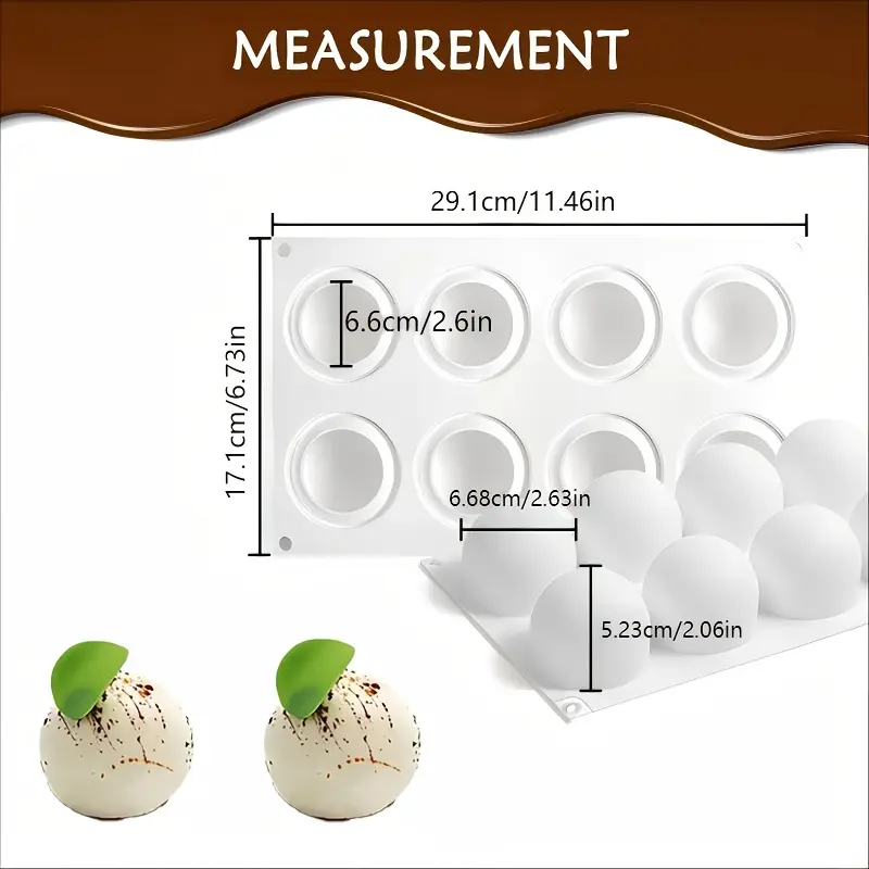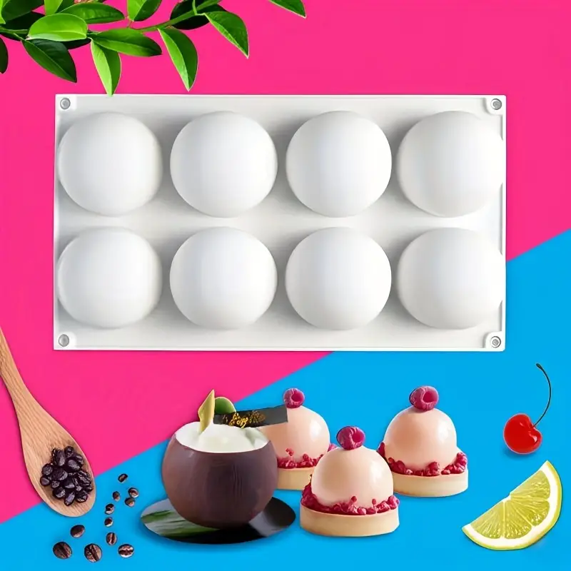 قالب سيليكون موس كيك كرات الشوكولاتة كبير غير لاصق بـ 8 تجاويف للترافل، كيك الموس، ومكعبات الثلج – 8 تجاويف على شكل كرة لصنع كعكة الموس، ، مناسب لصنع البودينغ والجيلي والآيس كريم والمزيد. ترند قالب جوز هند